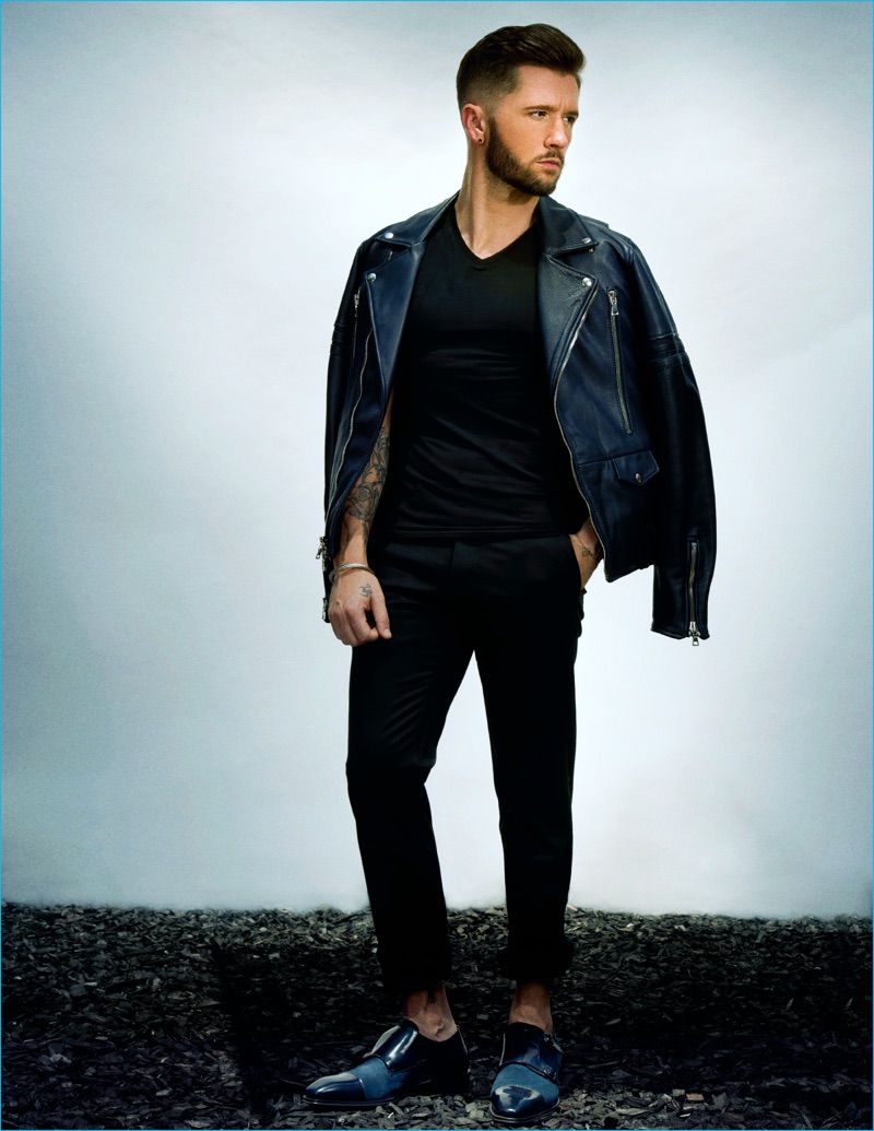 So You Think You Can Dance’s Travis Wall gets in step with Ferrvor for a new feature lensed by photographer Kaleb Khu. Outfitted by stylist Apuje Kalu, Wall is pictured in a contemporary wardrobe that features Theory, Beautiful Fül, Rag & Bone, and Moods of Norway.