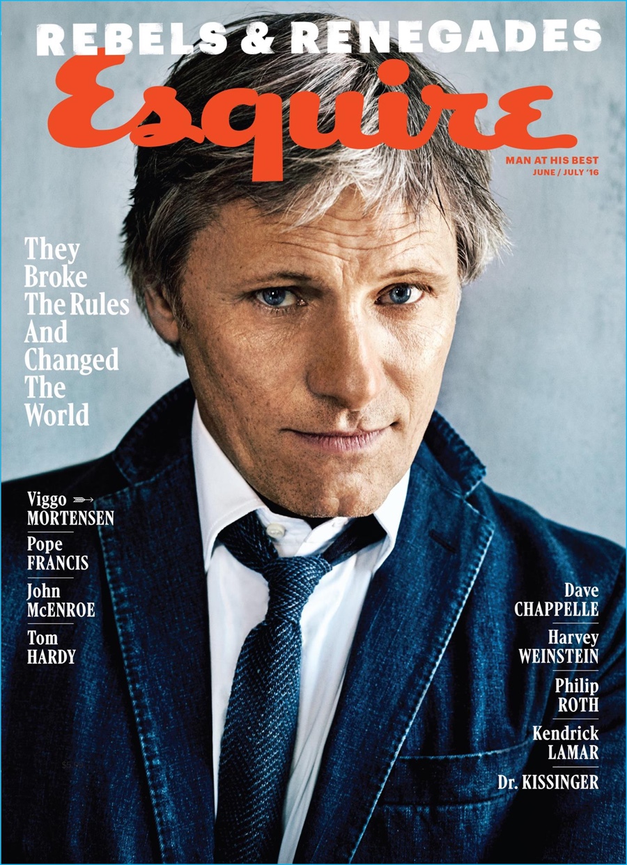 Captain Fantastic star Viggo Mortensen covers the June/July 2016 issue of Esquire, photographed by Marc Hom. Shooting the breeze with the magazine, Mortensen reveals aspects of his personal life such as his father suffering from dementia.