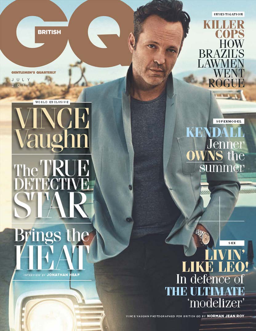 Promoting HBO television series True Detective, actor Vince Vaughn covers the July 2015 issue of British GQ. Discussing American politics, Vaughn comes out in support of the right to own a gun and gives his opinion on Edward Snowden. The 45 year-old actor shares, “Edward Snowden is a hero. I like what he did. My idea of treason is that you sell secrets to the enemy. He gave information to the American people. Snowden didn’t take information for money or dogmas. Governments claim to write endless laws to protect us, a law for this, a law for that, but are they working? I don’t think so. The consequences are that there is a staggering loss of freedom for the individual. I look at the drug wars and they are absolutely fucking ridiculous. There is a black market and the prisons are overcrowded and it’s not preventing drug use. There’s a corruption that goes all the way to the top.” Read more at GQ-Magazine.co.uk.