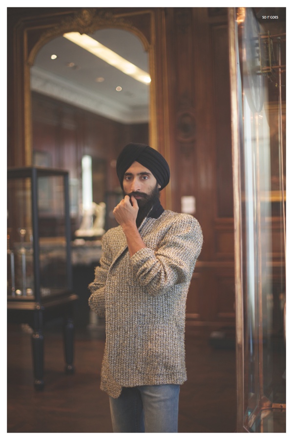 Famed designer and actor Waris Ahluwalia cuts a lean shape in a new photo shoot for So It Goes magazine. The style icon embraces lively colors in suiting as he is photographed by Samantha Casolari at the Neue Galerie in New York. Styled by Liz McClean (Bridges Mackinney), Ahluwalia dons fashions from Issey Miyake, Burberry Prorsum, Marc Jacobs and Giorgio Armani, among other luxury labels. / Creative direction by James Wright. Production by Lewis Carpenter. Fashion assistance by Ethan Cowley.