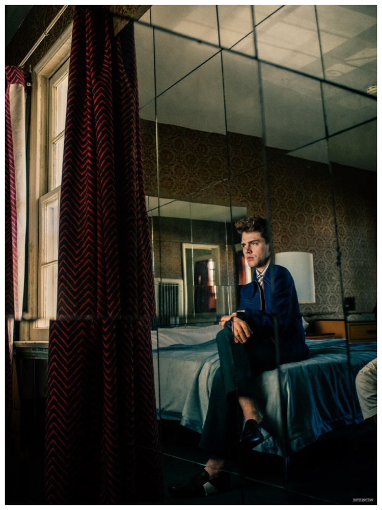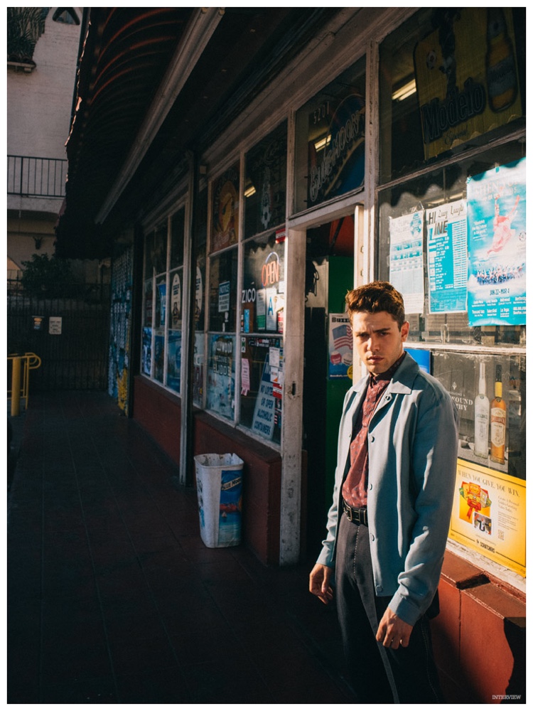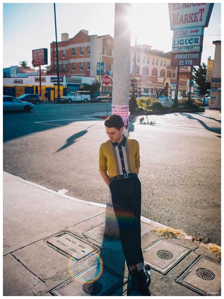 Photographed by Sebastian Kim, actor and director Xavier Dolan is featured in the February 2015 edition of Interview magazine. Shot in Los Angeles, California this past November, Dolan is styled by Elin Savahn for images that feature the 25 year-old in spring fashions from the likes of Louis Vuitton and Missoni.