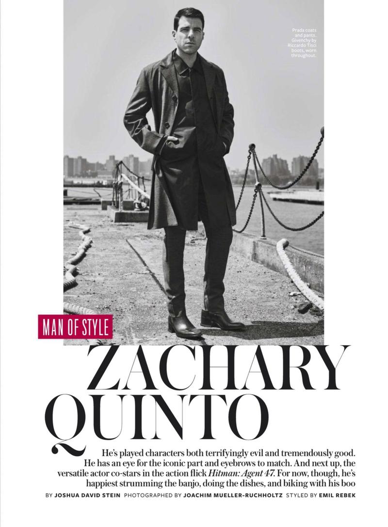 Zachary Quinto is a Man of Style for the August 2015 issue of InStyle. The Hitman: Agent 47 star connects with photographer Joachim Mueller Ruchholtz and stylist Emil Rebek for the outing. Posing for black & white images, Quinto rocks looks from the likes of Cerruti 1881 and Prada.