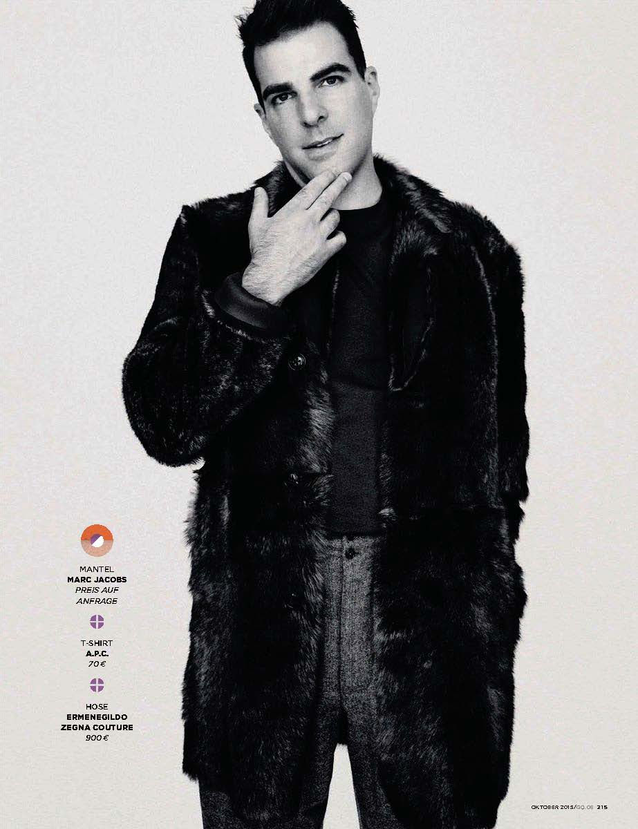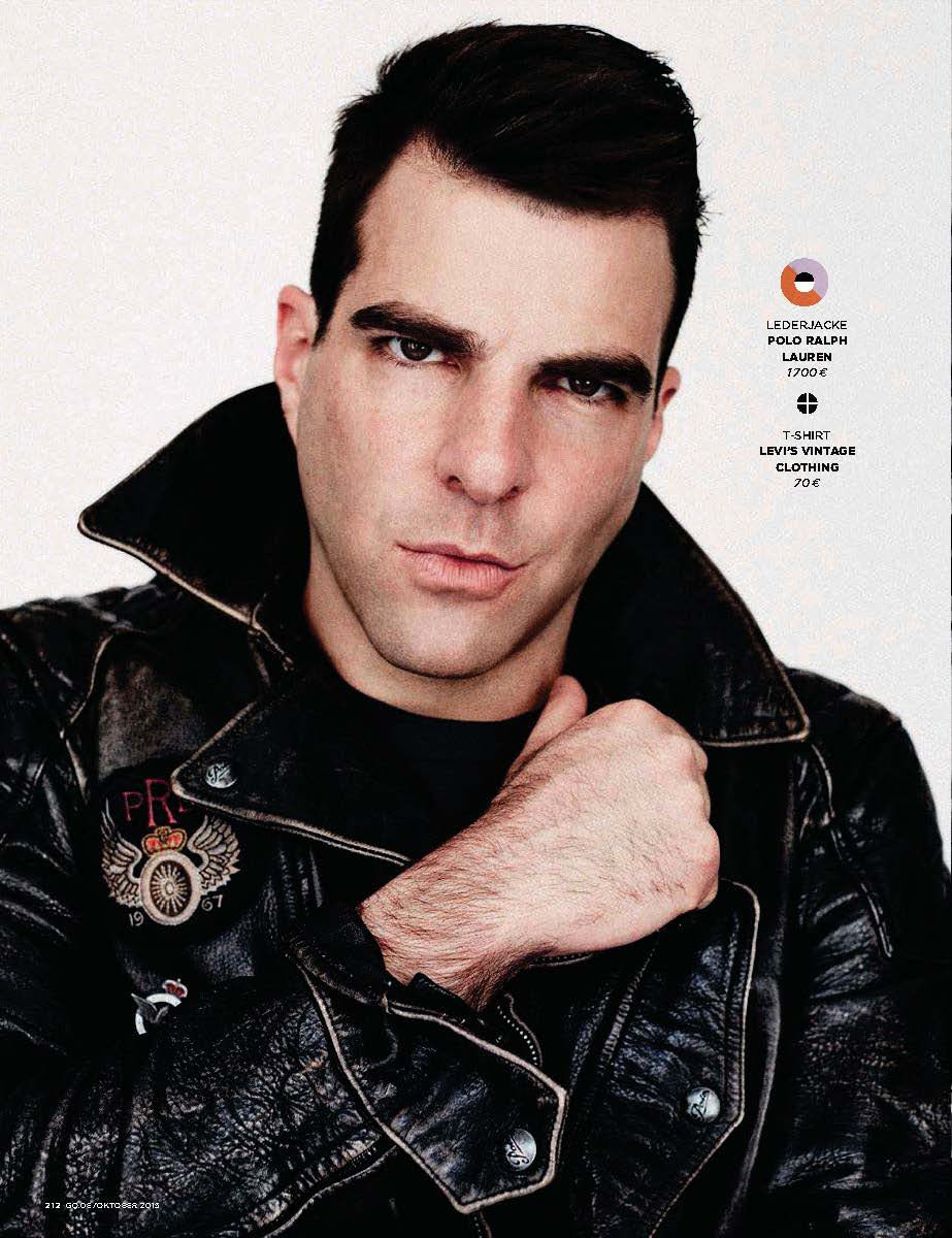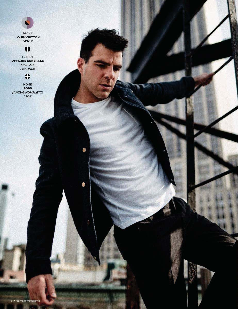 Zachary Quinto stars in a new photo shoot for the October 2015 issue of GQ Germany. Photographed by Billy Kidd, Quinto hits the studio with stylist Santa Bevacqua. Sporting luxurious fall styles, Quinto channels an effortless cool in Louis Vuitton, BOSS by Hugo Boss and other labels.Pin
