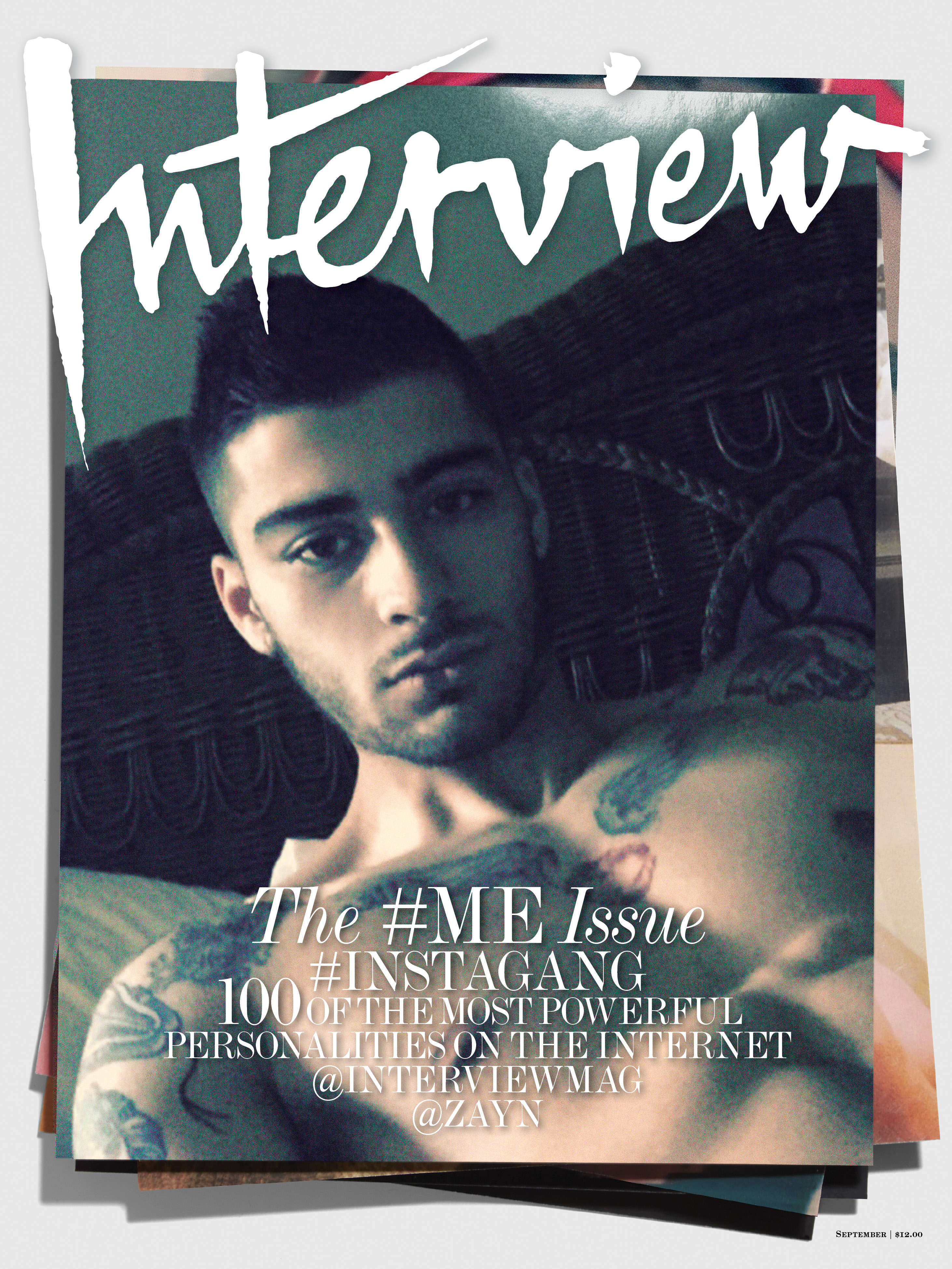 Interview magazine is selfie obsessed for its September 2015 issue. The magazine puts the spotlight on stars that are social media sensations such as Kim Kardashian. After splitting from One Direction, Zayn Malik enjoys a moment in the spotlight on his own. Interview enlists Malik for its new issue. The singer goes shirtless for a selfie cover, showing off his many tattoos.