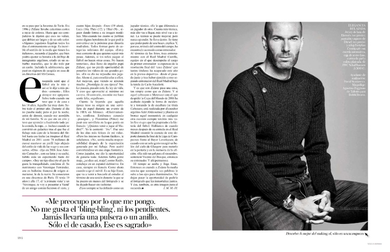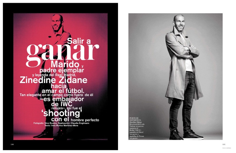 Real Madrid Castilla coach and former footballer Zinedine Zidane graces the pages of Vogue España’s January 2015 issue. The 42 year-old French coach connects with stylist Claudia Englmann and photographer Nico for a black & white studio shoot. Posing for quiet images, Zidane sports contemporary menswear styles from the likes of Diesel.