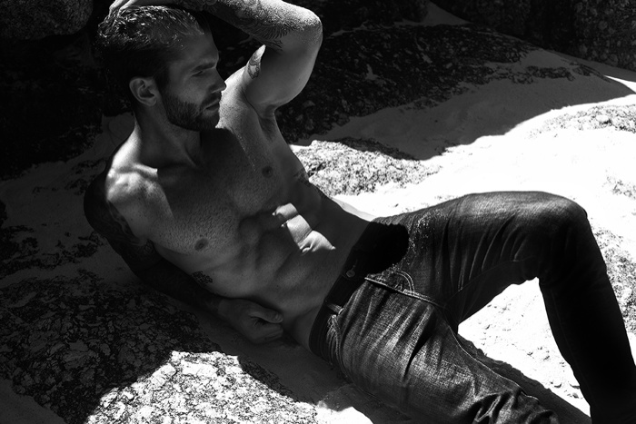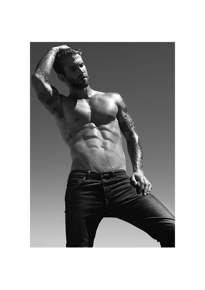 Shooting André-Kult model André Hamann connects with photographer Mo Gaff, taking things outside for a new photo update. Ready for warm weather, André goes shirtless, striking sharp angles for a striking new series of images in black & white and color.