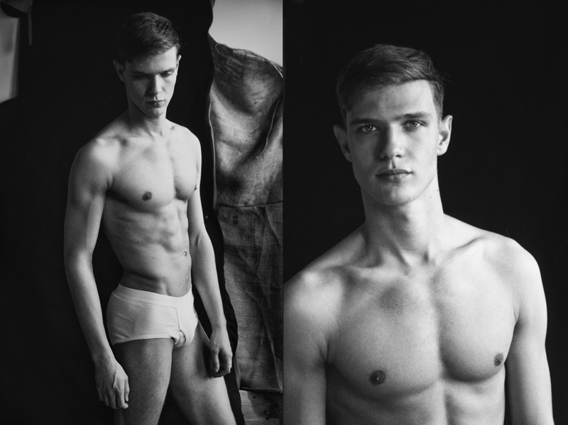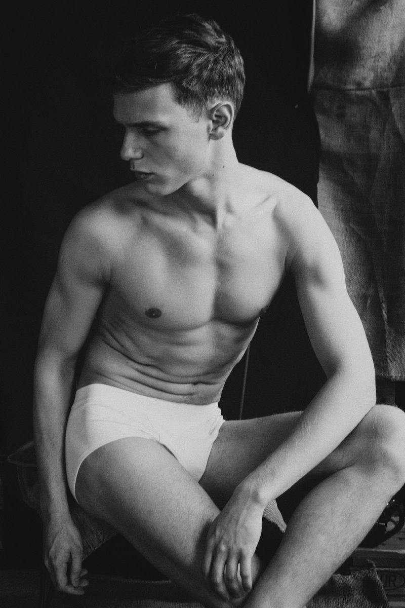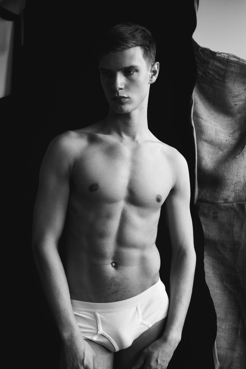 Shooting Loammi–Model Loammi Goetghebeur reunites with photographer Michael Elmquist for a photo update. Posing for a mix of moody and jovial images, Loammi strips down to his underwear, offering a raw classic portrait series in black & white.