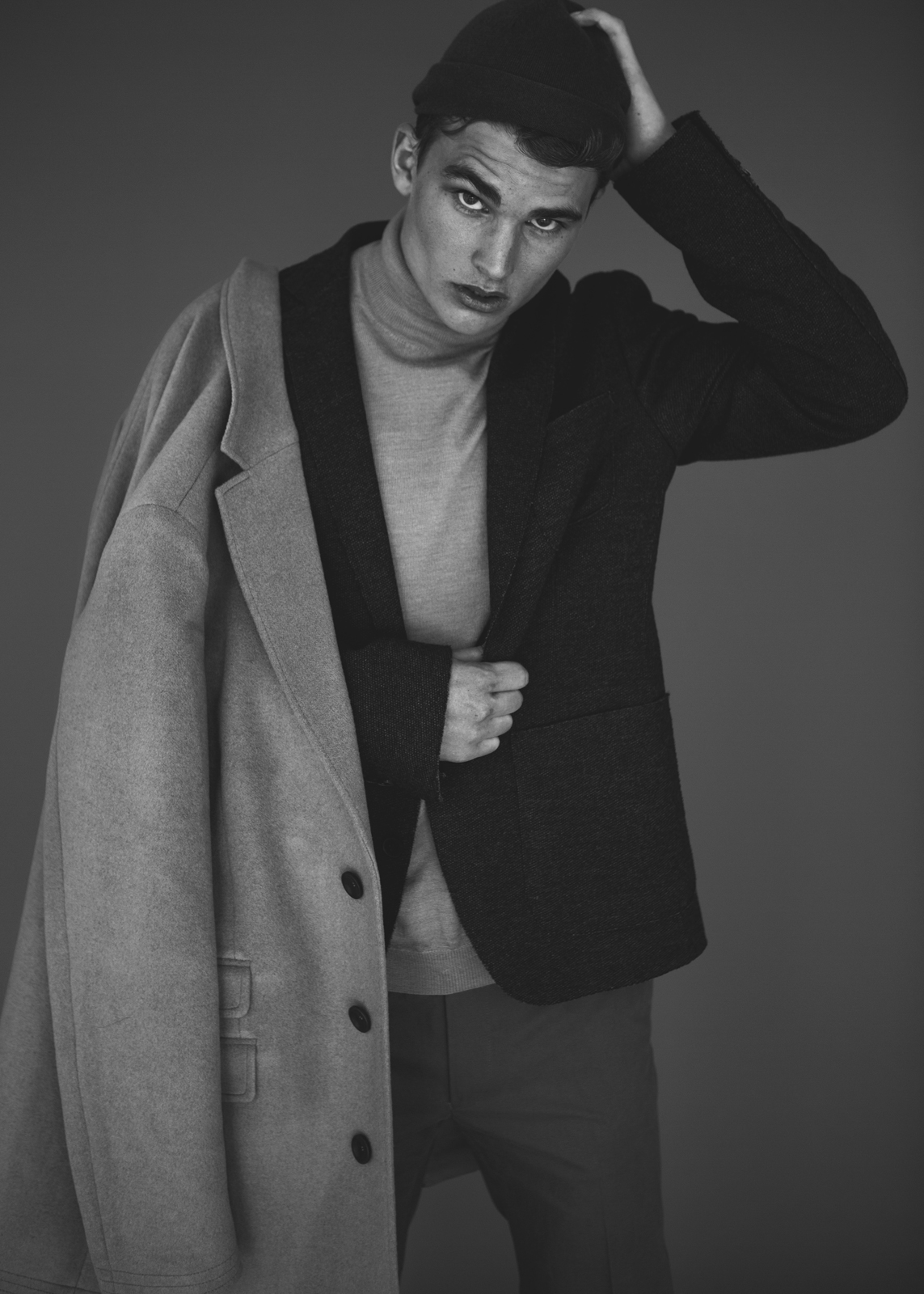 Capturing Adam–A subdued mood permeates the latest portrait series from photographer Fredrik Wannerstedt, starring fresh face model Adam Lindholm (Elite Stockholm). Adam stands tall in sleek, streamlined outerwear pieces and minimalist knits, unveiling his clean looks and promising potential.
