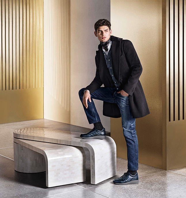 Hogan Fall/Winter 2014 Campaign-After teasing us with a preview of its fall/winter 2014 campaign starring French model Arthur Gosse, Hogan releases few more images of its latest outing. Posing for Josh Olins’ lens, the Major Paris model dons some of the label’s key pieces for the fall season, focusing the attention on the versatility of the collection. Captured in a luminous modern setting, Arthur easily alternates formal suits, casual jeans and peacoats, completing his fall wardrobe with Hogan’s luxurious footwear designs.