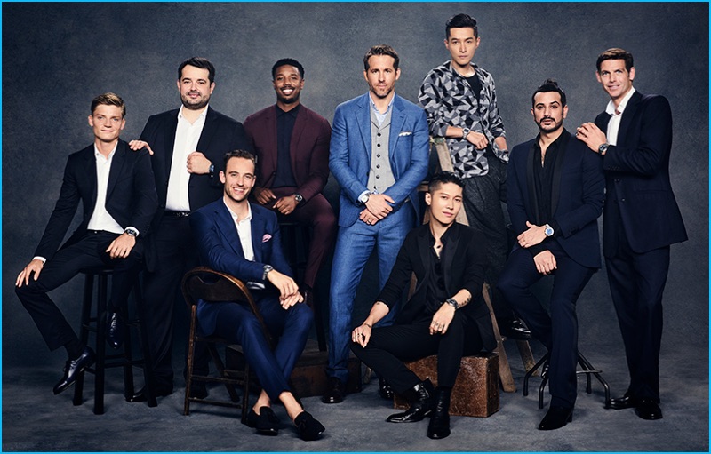 Game Changers (Pictured Left to Right): David Goffin, Jean-François Piège, Joel Dicker, Michael B. Jordan, Ryan Reynolds, Miyavi, Hu Ge, Mohammed Sultan Al Habtoor, and Malcolm Borwick photographed for Piaget.
