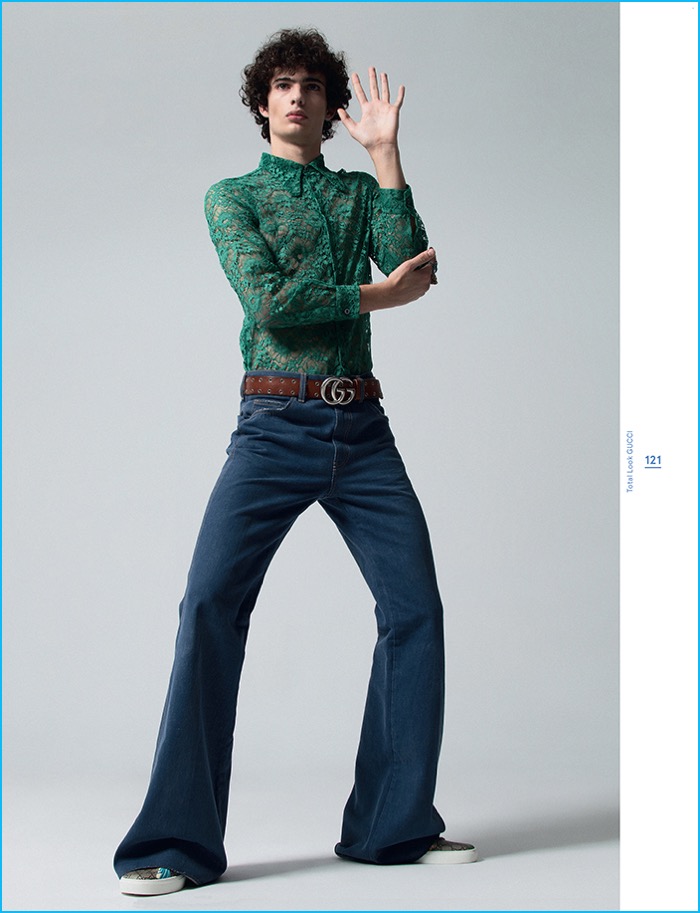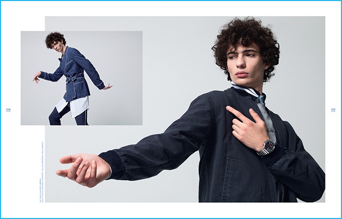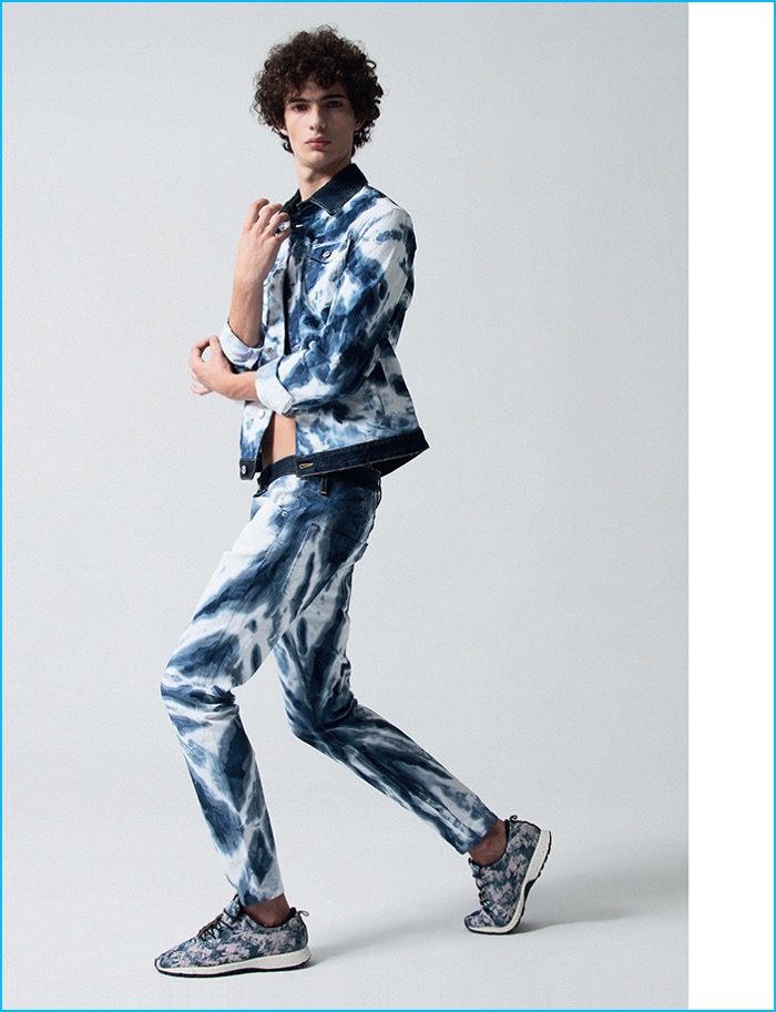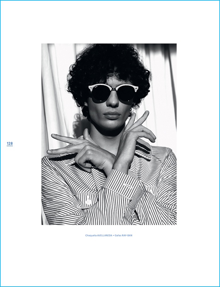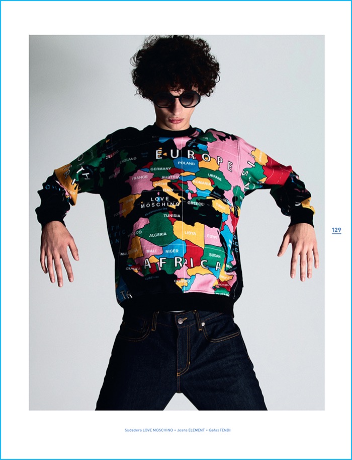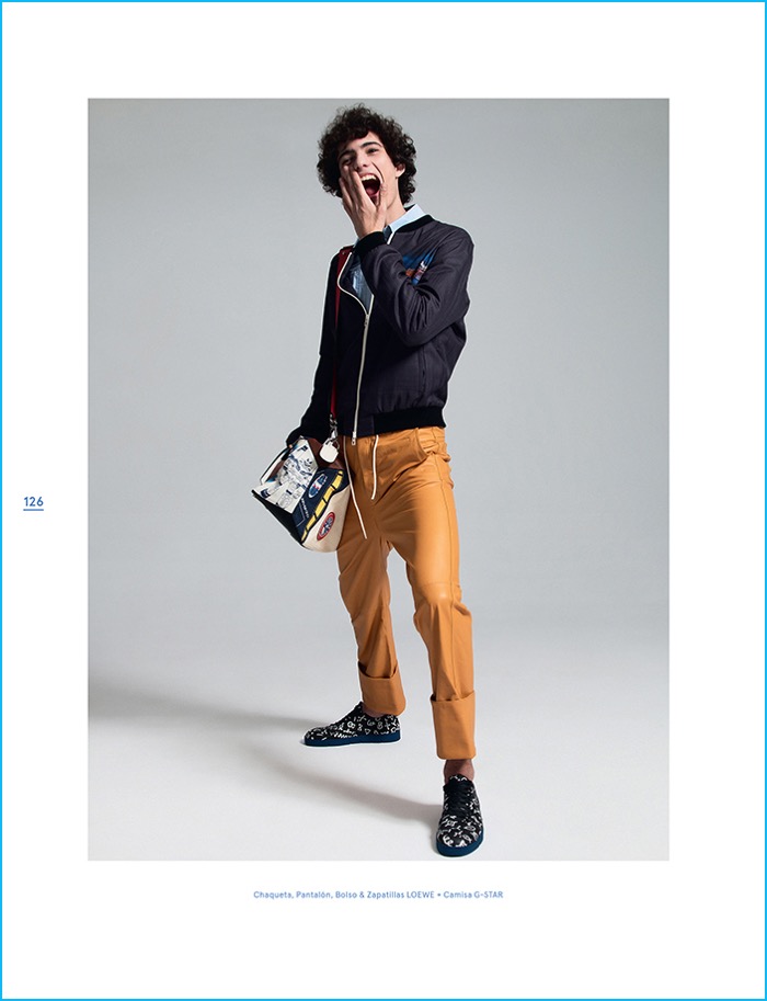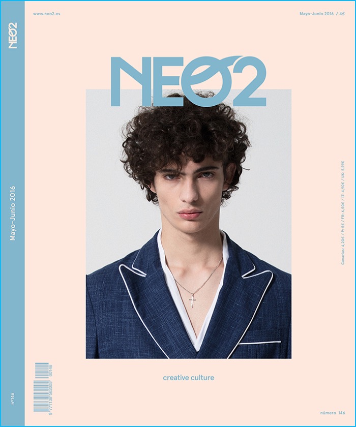 Spanish magazine Neo2 looks to curly haired model Piero Mendez as the cover star of its May/June 2016 issue. Starring in a quirky fashion editorial, Piero hits the studio with photographer Sebastian Troncoso. Aiming to turn quite the number of heads, Piero makes a designer statement with help from stylist Javier De Juanas. Embracing an eclectic reference, Piero is pictured in standout looks that range from Dsquared2’s bleached infatuation to Gucci’s nostalgic 70s love affair.