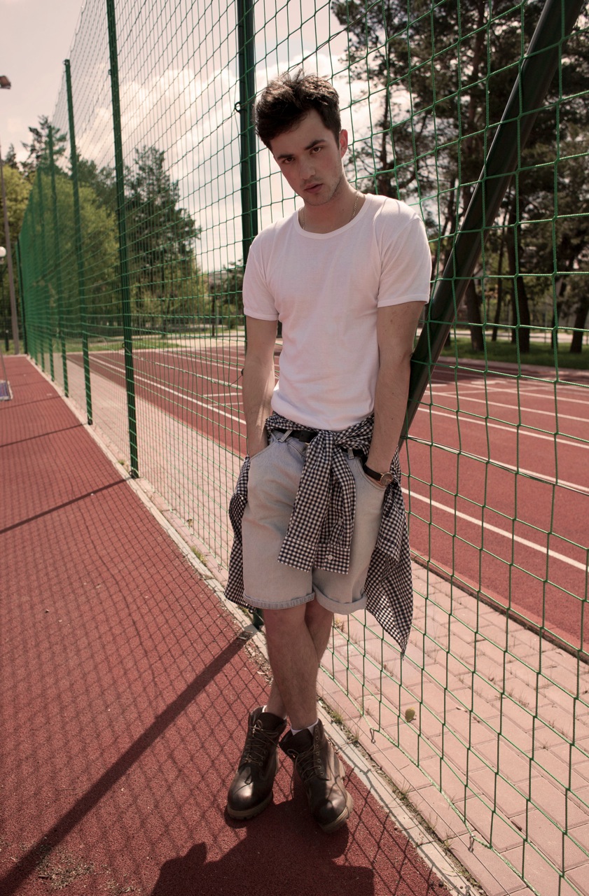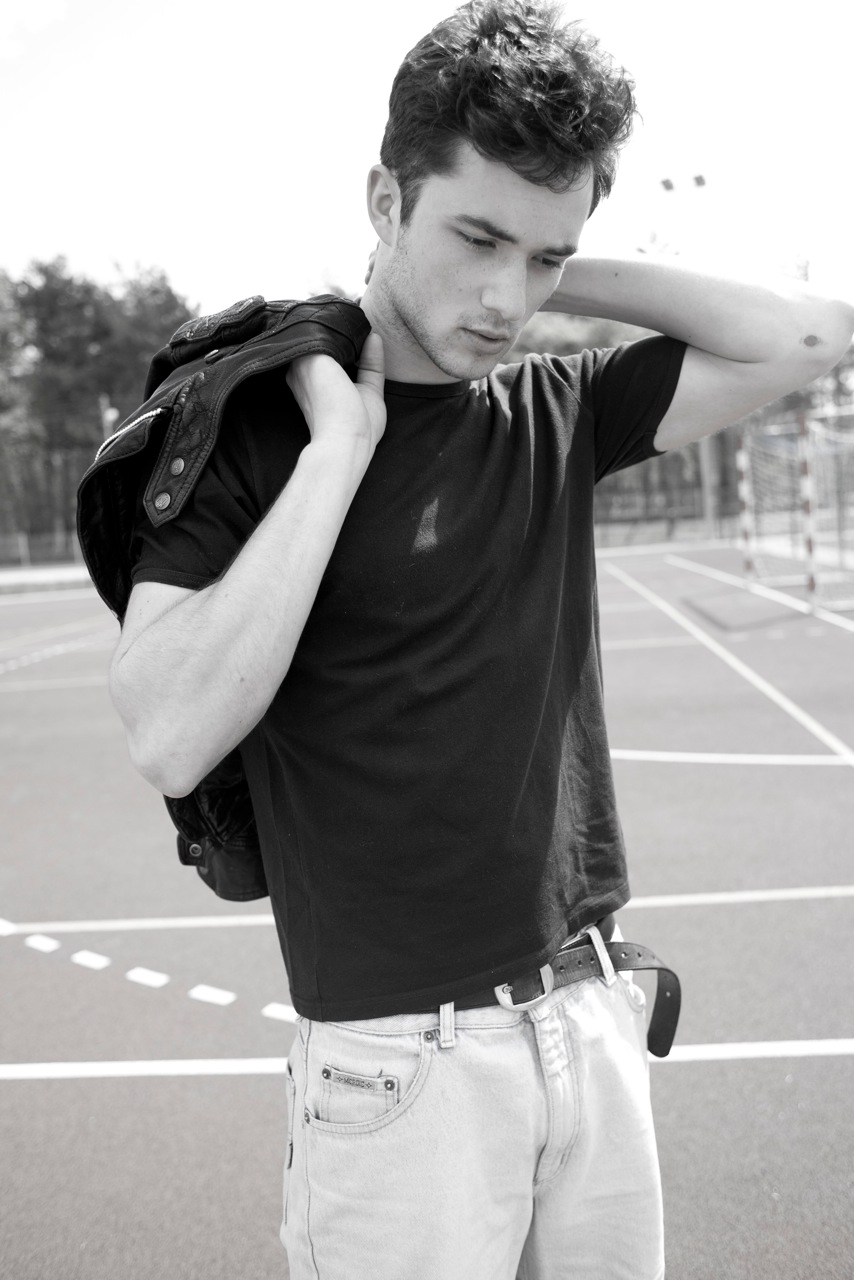 Shooting with Piotr–Captured at the local park on a sunny afternoon, fresh face Piotr Wrobel (Rebel Models) steps before the lens of photographer Asia Typek for an intimate portrait series. Adopting a bad boy mentality, Piotr is styled by Kama Majewska, who dresses the up and comer in casual separates finished with a grungy edge.
