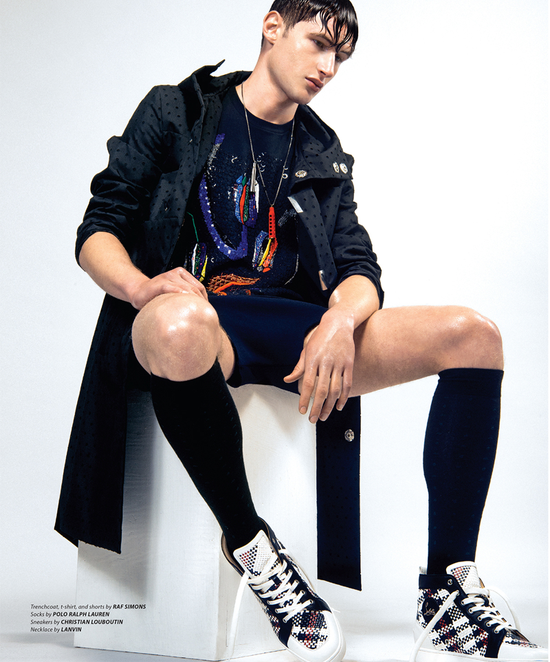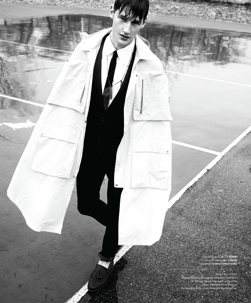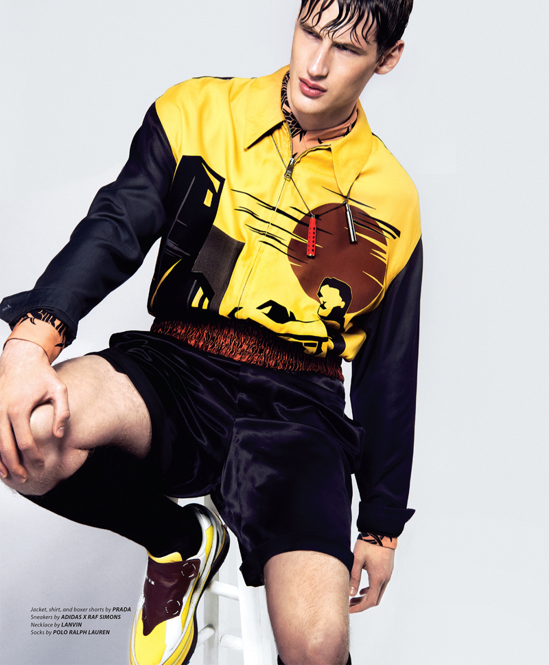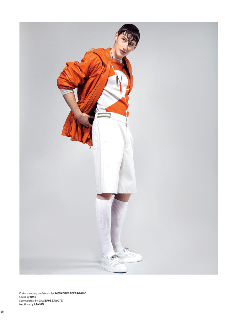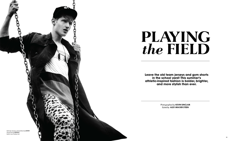 Playing the Field-Wearing sporty summer fashions for the June/July issue of Essential Homme, model Tino Thielens is photographed by Kevin Sinclair. Posing for photos in studio and at the local park, Tino is styled by Alex Van der Steen, sporting looks from labels that include Prada, Givenchy and 3.1 Phillip Lim. / Makeup by Fumiaki Nakagawa. Hair by Takuya Sugawara.