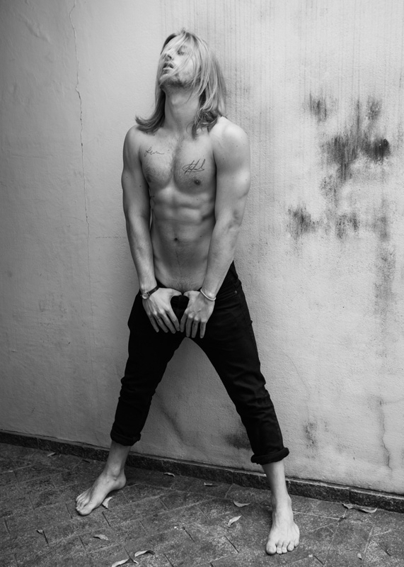 Elo Management model up and comer Alessandro Pierozan is the latest face to appear before photographer Mario Lopes for a shoot. The long haired blond model is styled by Raphael Mendonça in a black pair of skinny jeans for a gritty black & white portrait session. / Grooming by Carlos Cesario.