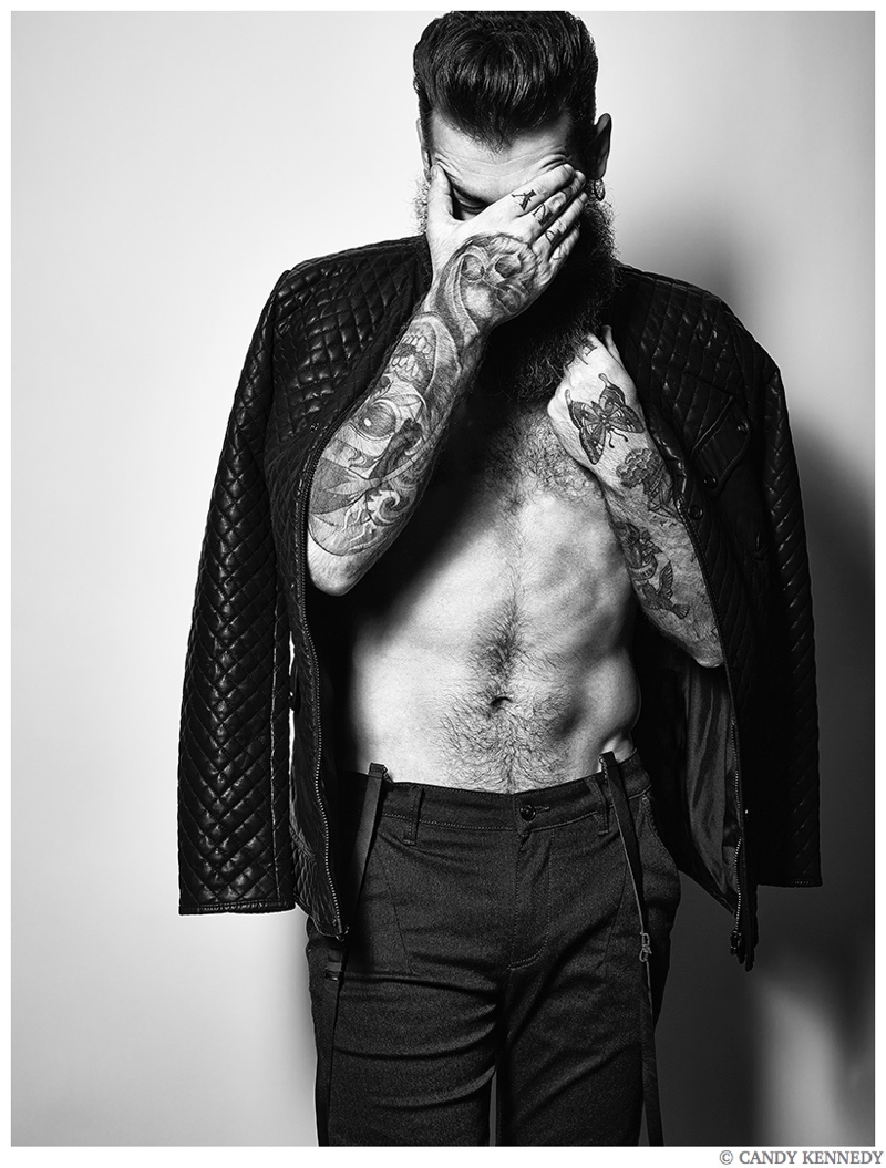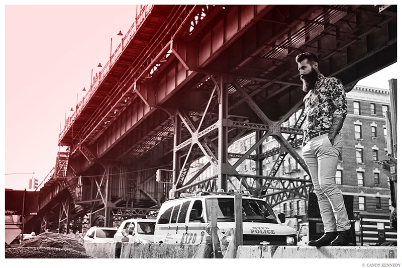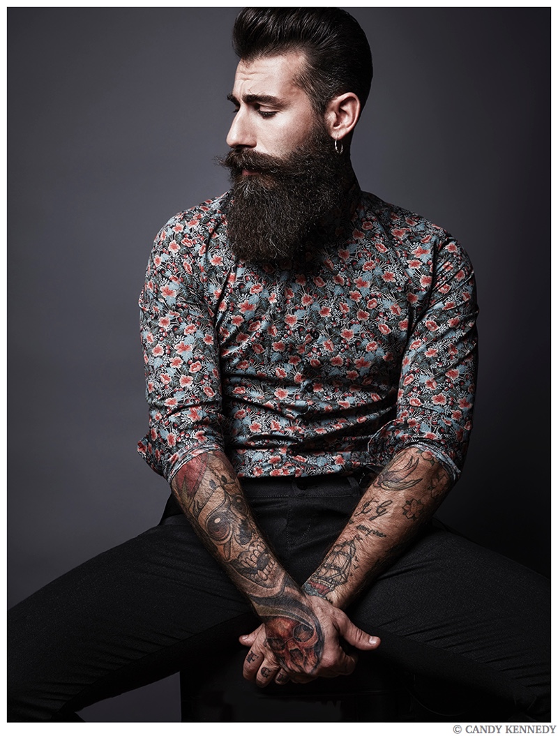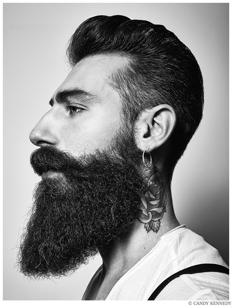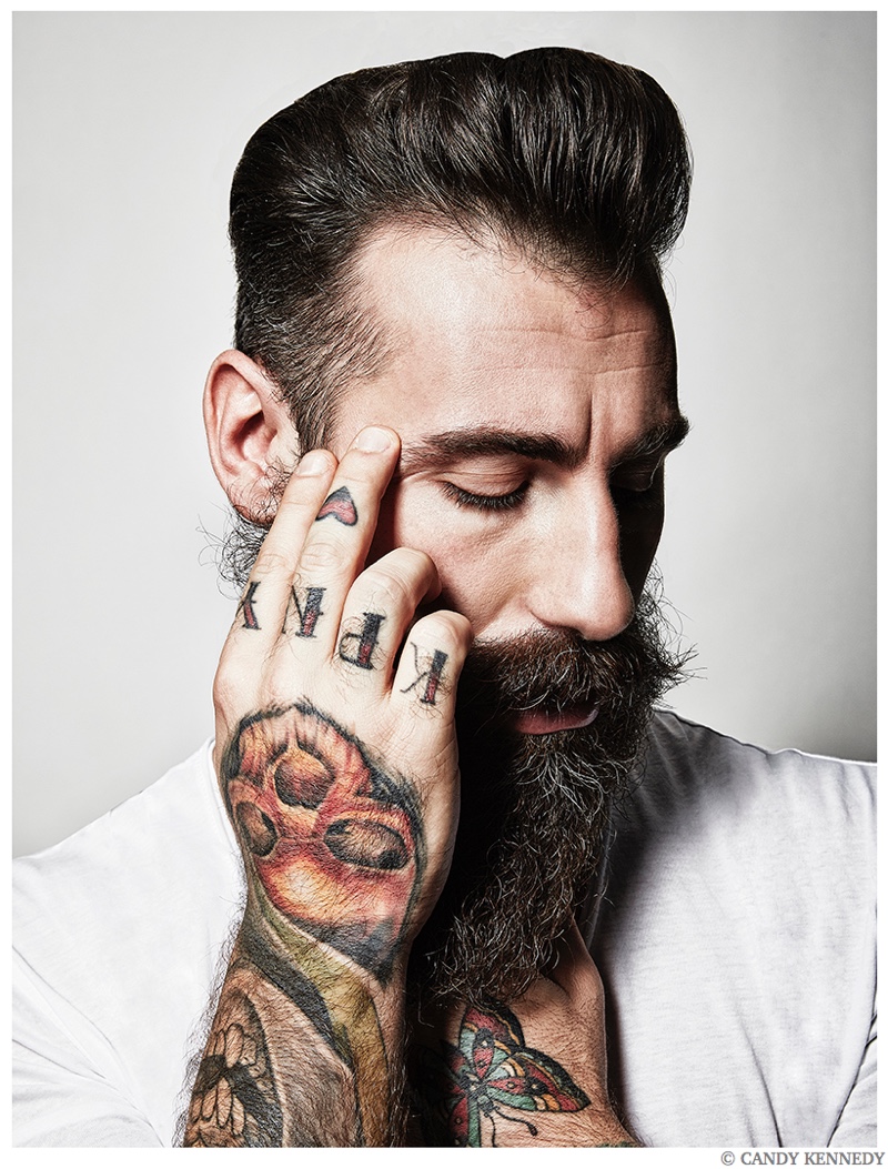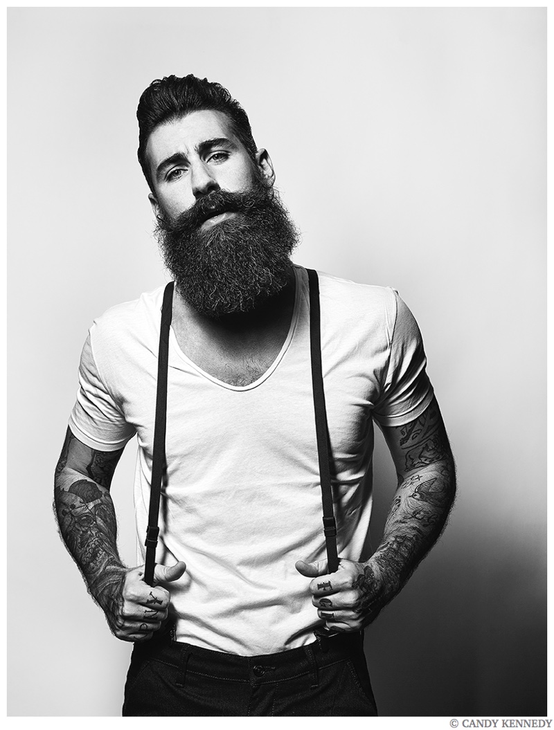 One of the latest subjects to cross paths with photographer Candy Kennedy is none other than Wilhelmina New York model Gianluca Di Sotto. Known for his well groomed beard, the Italian model sits for portraits, exhibiting a confident cool. Gianluca also ventures outdoors for a relaxed video. / Grooming by Pascale Poma.