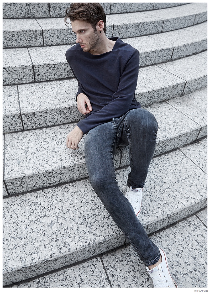 Shooting Urban-Sporting a wardrobe that includes casual essentials from Calvin Klein, Acne Studios, COS, Cheap Monday and Converse, Elite model Urban Strasser appears in a new shoot with photographer Fan Wu. Styled by Kimiko Aruni, the Austrian model poses for relaxed images. / Makeup by Tina Wong.