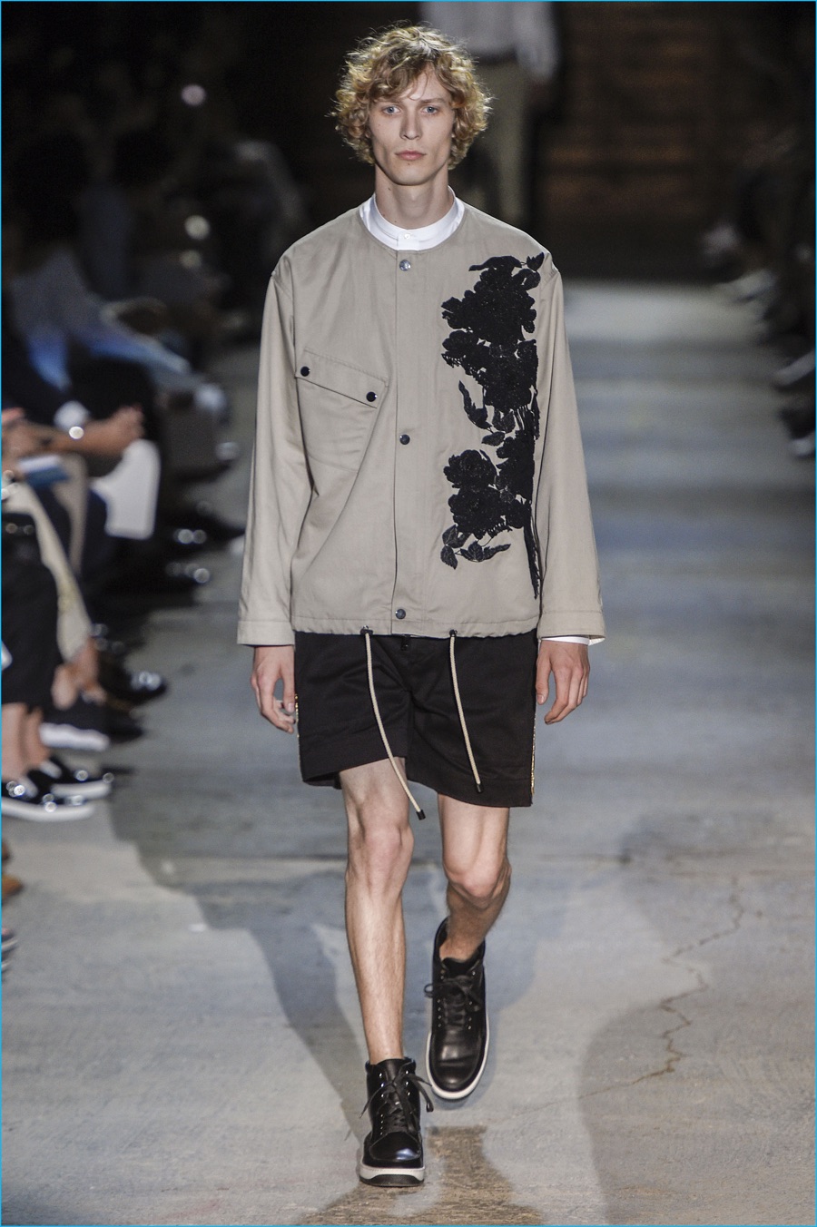 Pairing a band collar shirt with paper bag waist shorts, Ports 1961 has a classic check moment for spring-summer 2017.