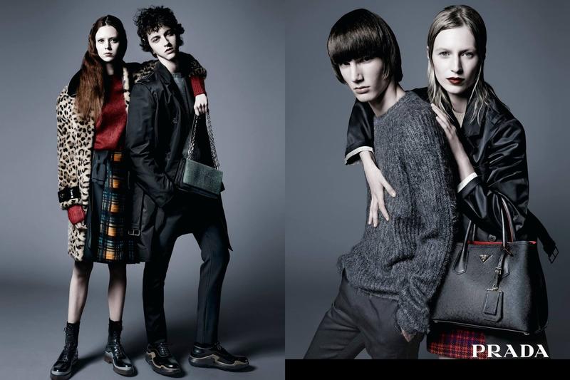 Italian fashion house Prada unveils its pre-fall 2015 campaign, which was photographed by Steven Meisel. Embracing a his ‘n’ her narrative, Prada presents its latest fashions with stunning portraits captured in studio. The advertisements feature a vast cast Artur Chruszcz, Aya Jones, Finnly Davis, Johannes Spaas, Julia Nobis, Louis Bauvir, Maartje Verhoef, Natalie Westling, Niels Trispel, Tim Schuhmacher and Willow Hand.