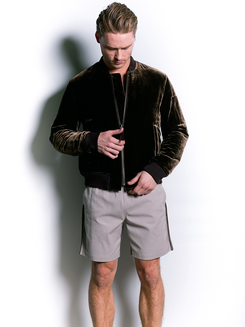 PinAndrew wears pocket tee W.R.K., jacket Robert Comstock, jeans Citizens of Humanity, and leather bag Giles & Moore.PinAndrew wears bomber jacket Vince and shorts Thaddeus O’Neil.PinAndrew wears bag Troubadour, sunglasses Randolph, t-shirt and suit Vince.