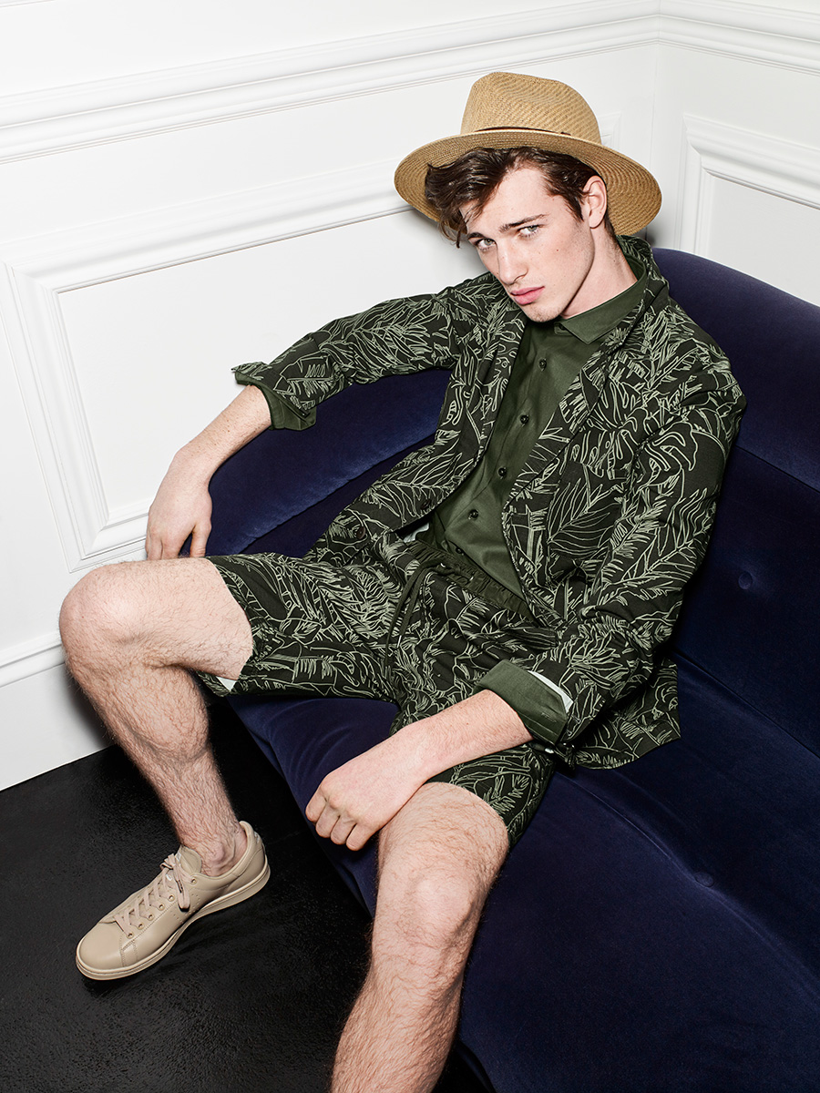 Transitioning into a more casual moment, printed shirts are front and center. Paired with pleated trousers, shirts are updated with floral and grid prints. In addition to tuxedos, the short suit provides a youthful spin on formal style. Rounding out the guide with contemporary details, collarless jackets, buttons, pins, suspenders and more bring an inspiring edge to prom ensembles.