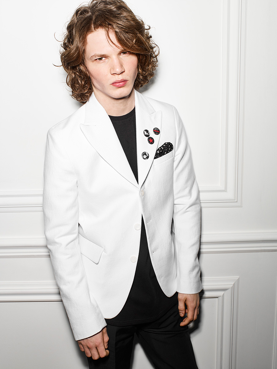 PinModern Statement: Matthew Davidson gravitates towards black and white with a collarless suit jacket.
