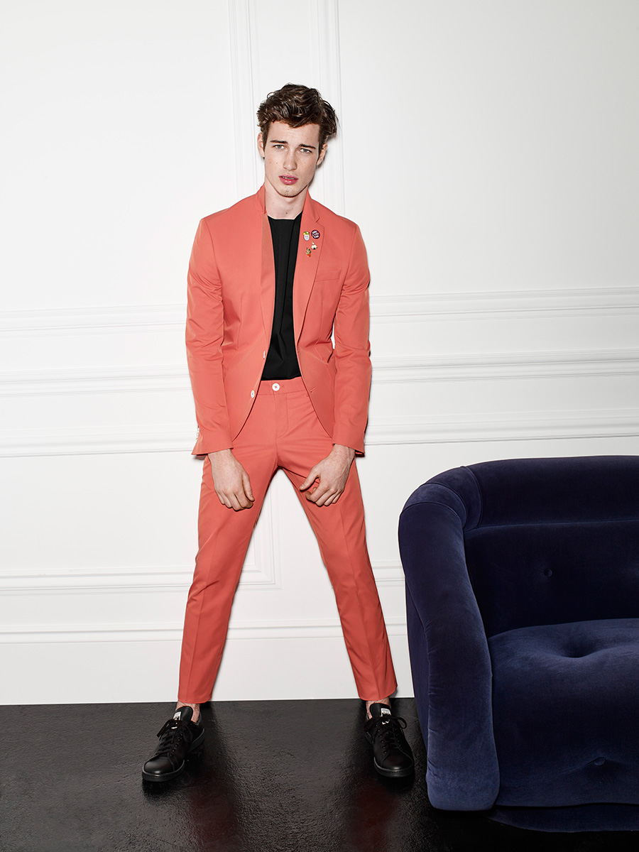 PinTailored Shine: Robbie Beeser is front and center in a short Satiny pastel suit from Le 31.PinPastel Standout: Matthew Davidson dons a trim Satiny Pastel suit from Le 31.