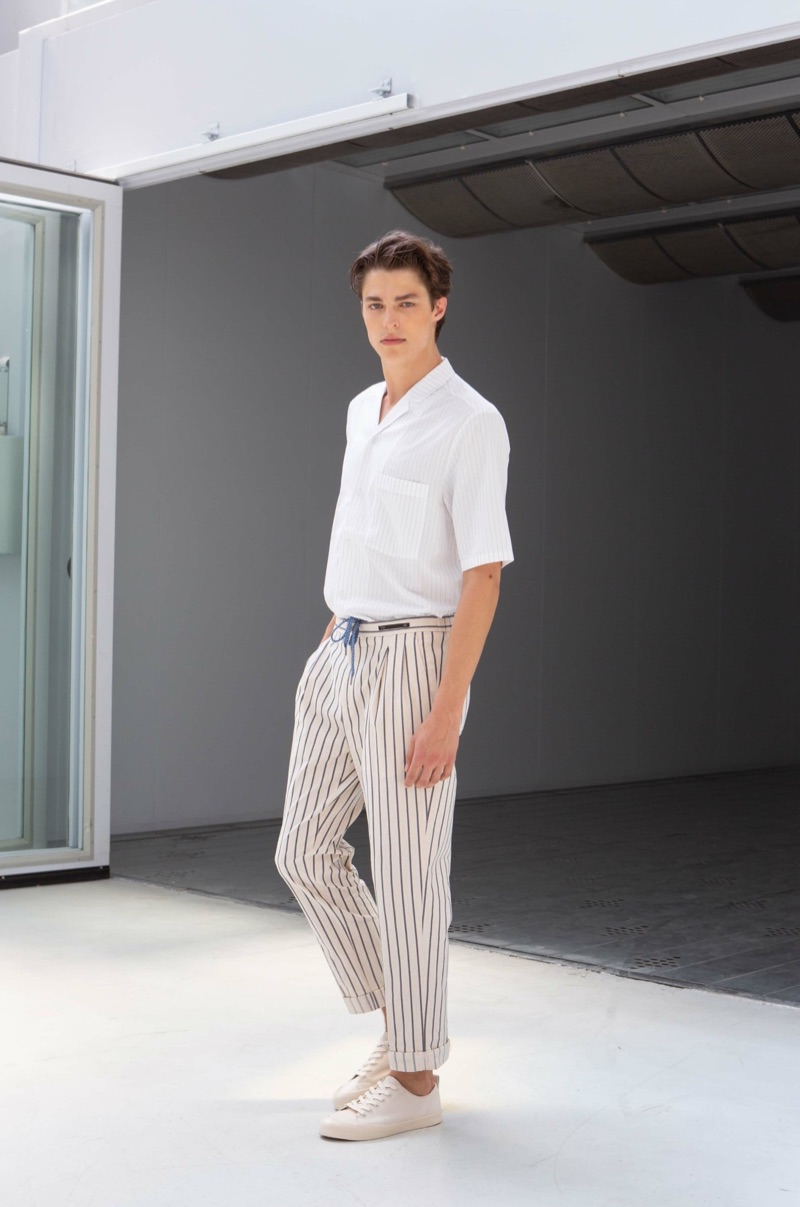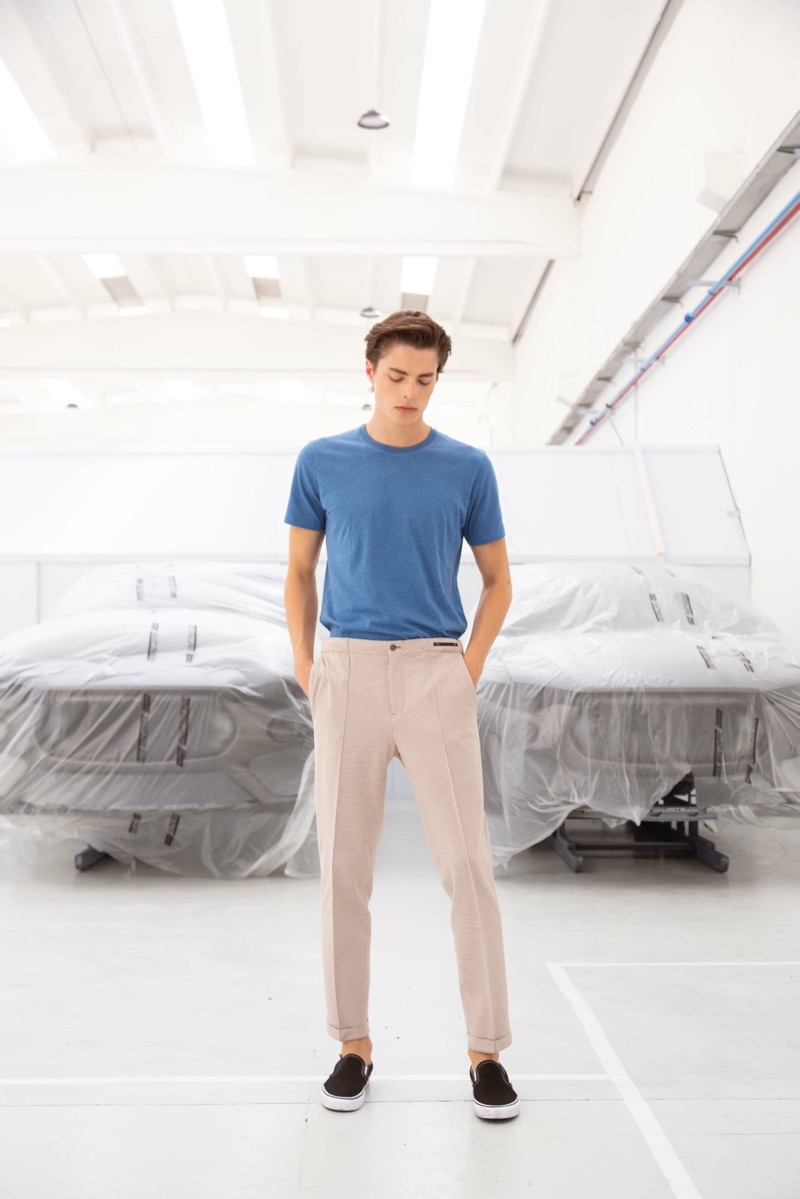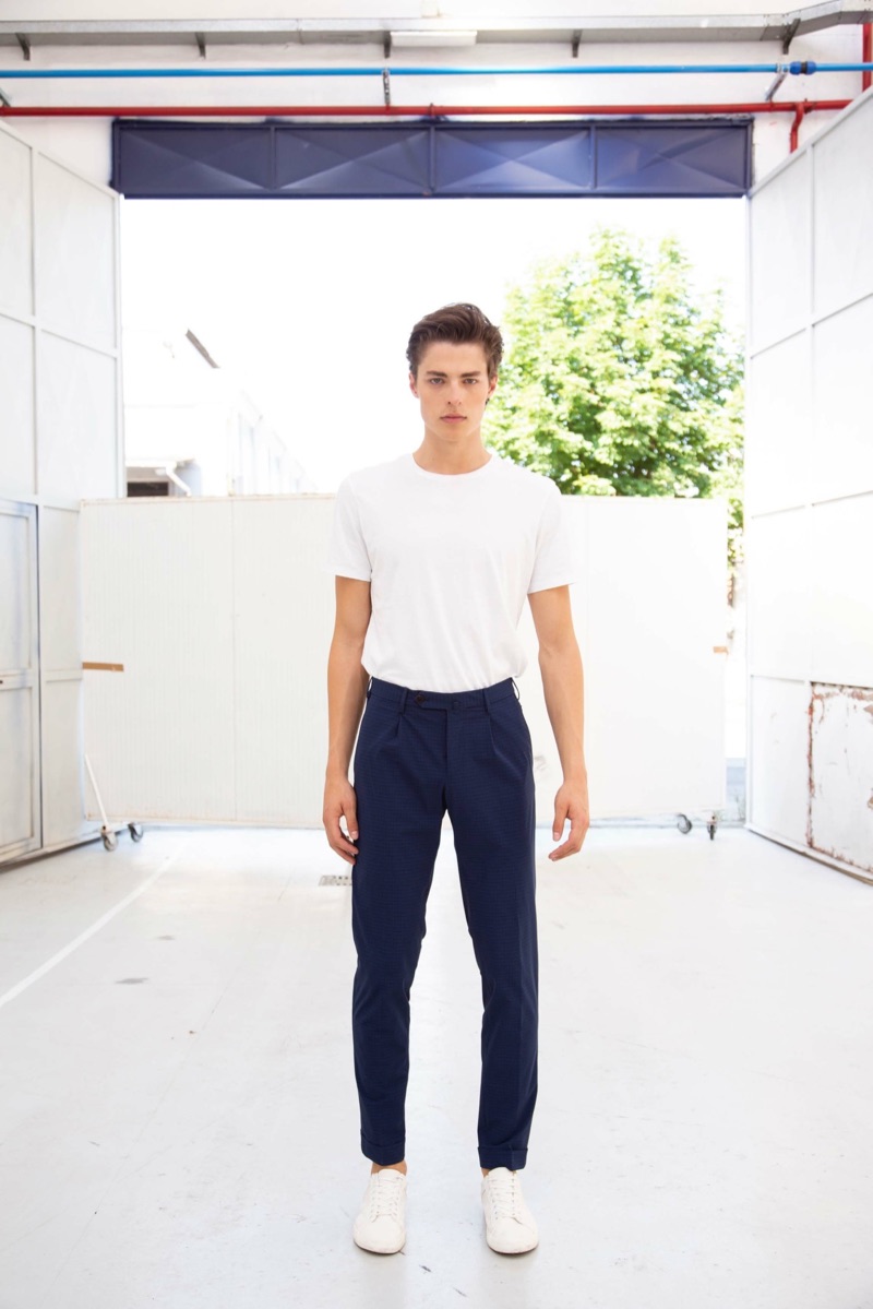 On the heels of a Holt Renfrew holiday outing, model Brodie Scott is back in the spotlight. Looking forward to the new season, Brodie links up with PT Pantaloni Torino for its spring-summer 2019 lookbook. Brodie embraces smart styles from the label’s PT01 mainline collection. Approaching the range, PT Pantaloni Torino finds inspiration in the surreal world of director Federico Fellini. A mix of muted and vibrant tones come together with exciting prints as the brand delivers a variety of shorts and pants. They come in sharp cuts and various fits, executed in cotton and wool.