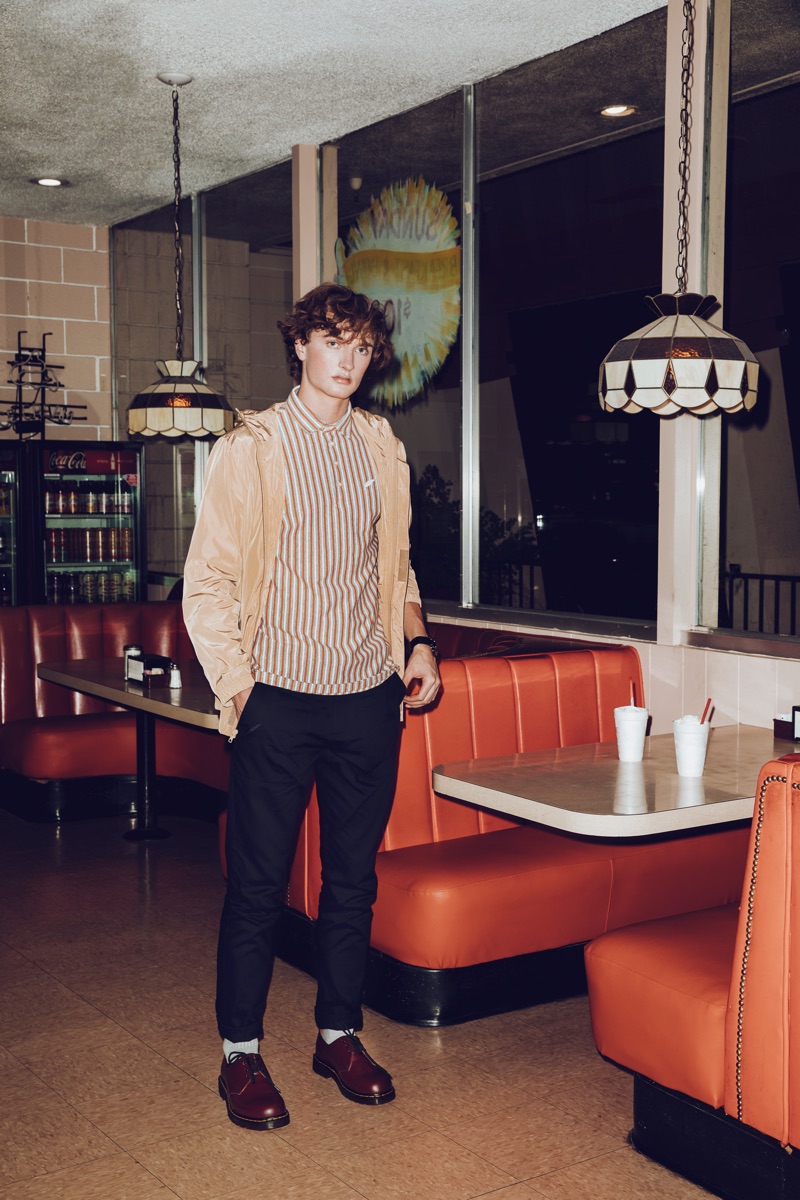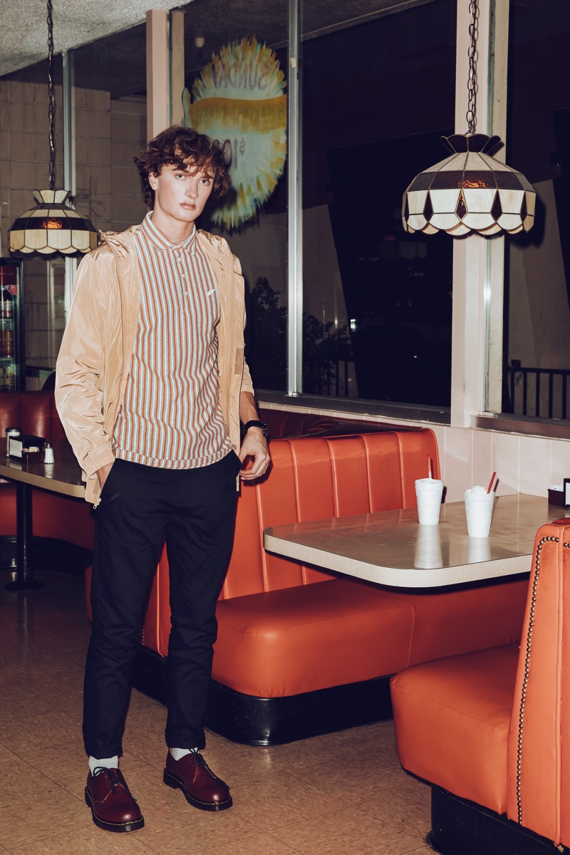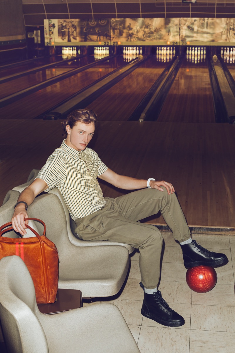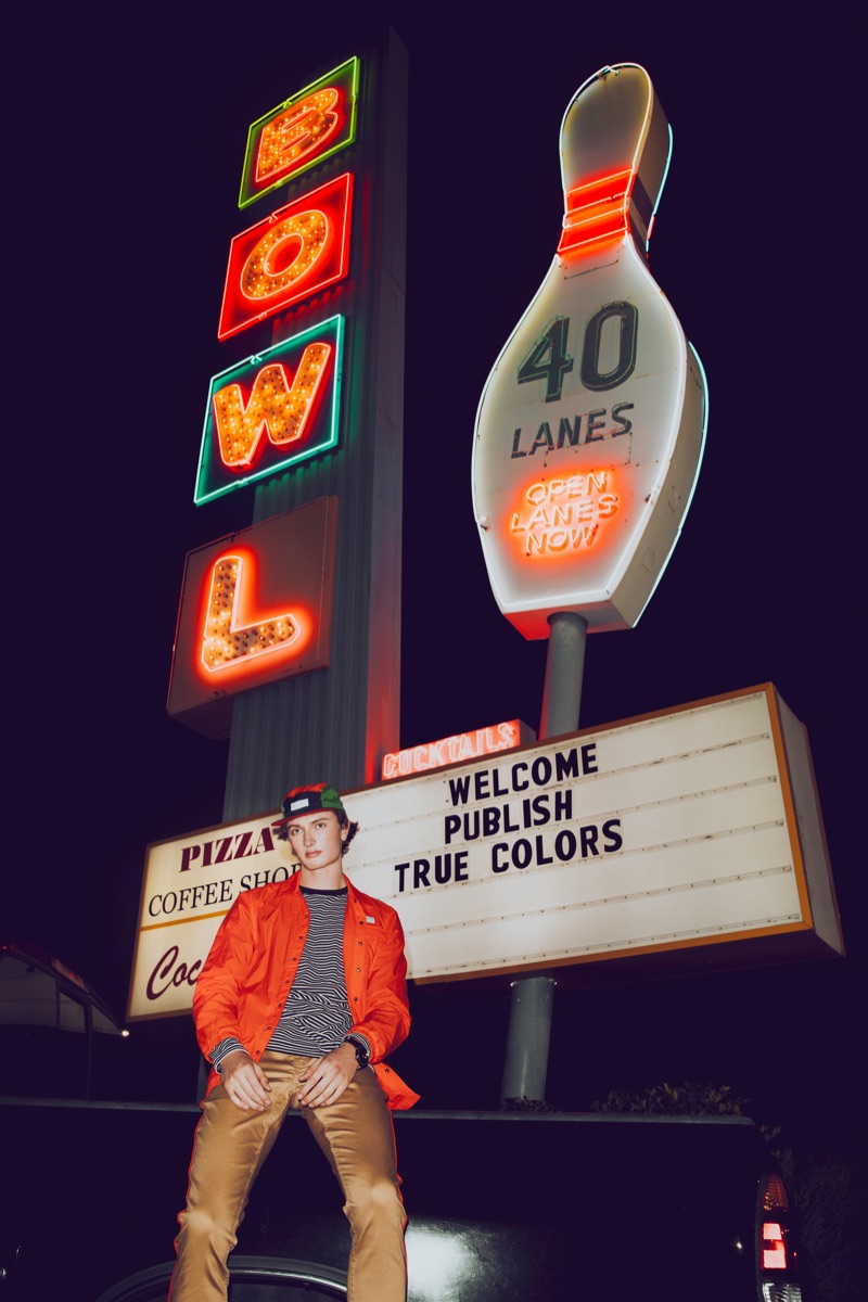 California-based label Publish Brand heads to Anaheim’s Linbrook Bowling Center to unveil its retro-inspired holiday 2018 collection. The fashion brand enlists the help of model Jason Kekich to showcase its latest clothes. Stepping into a lane of his own, Jason dons choice pieces from Publish Brand’s “True Colors” range. Must-haves include items such as a sherpa-lined canvas trench, vertical stripe polo, and classic fit patchwork pants. Publish Brand also delivers accessories like its “Blocked” nylon cap.