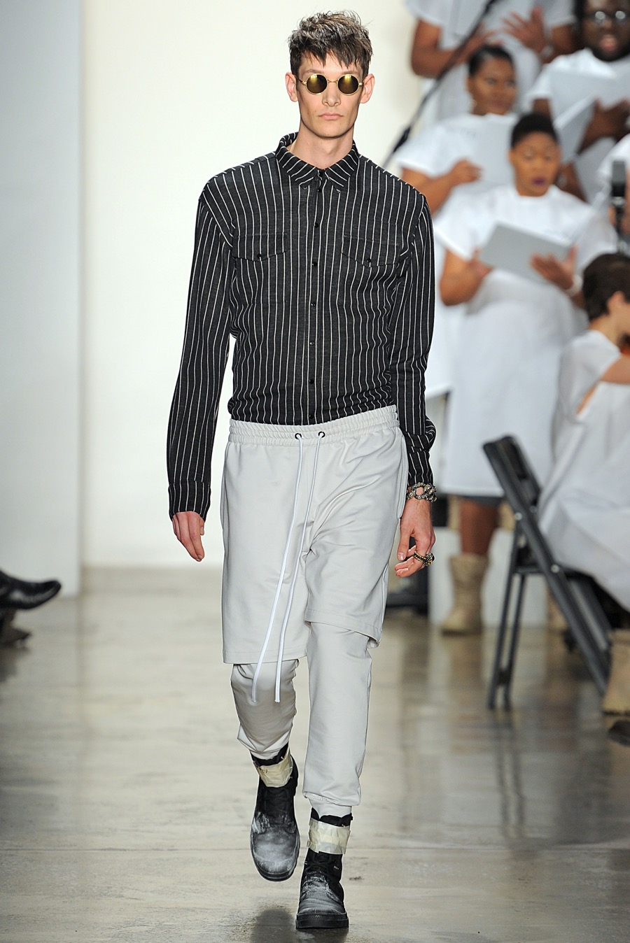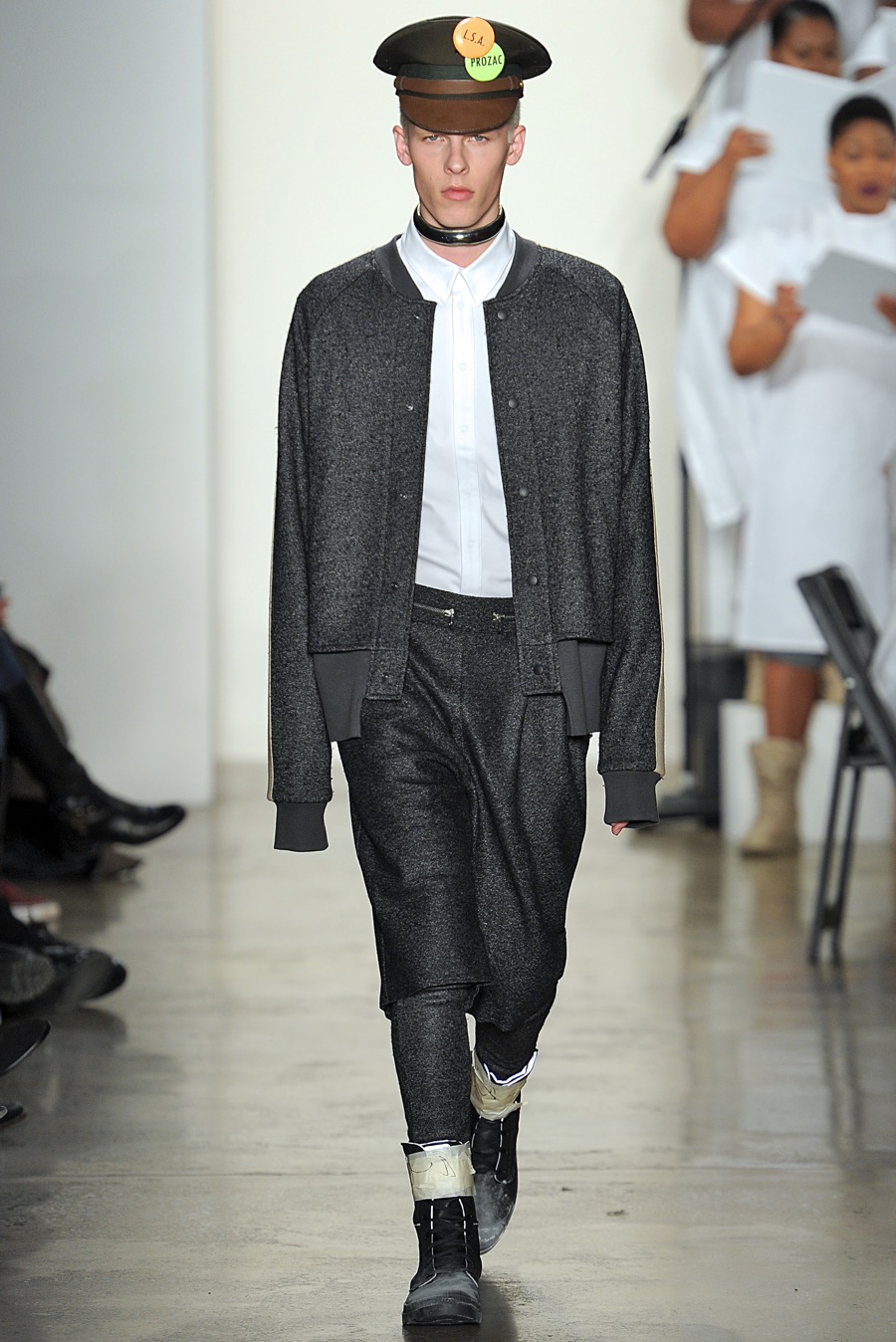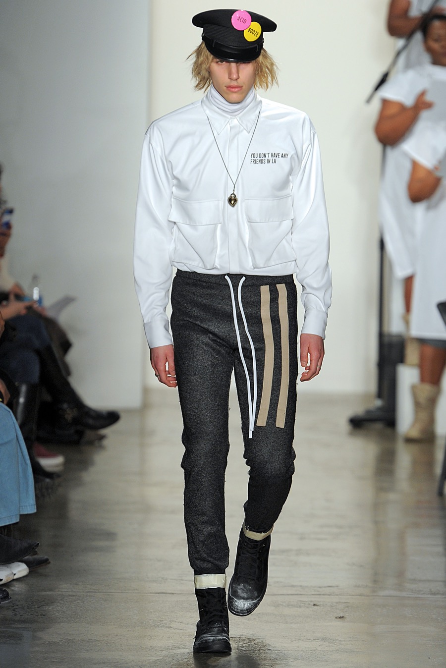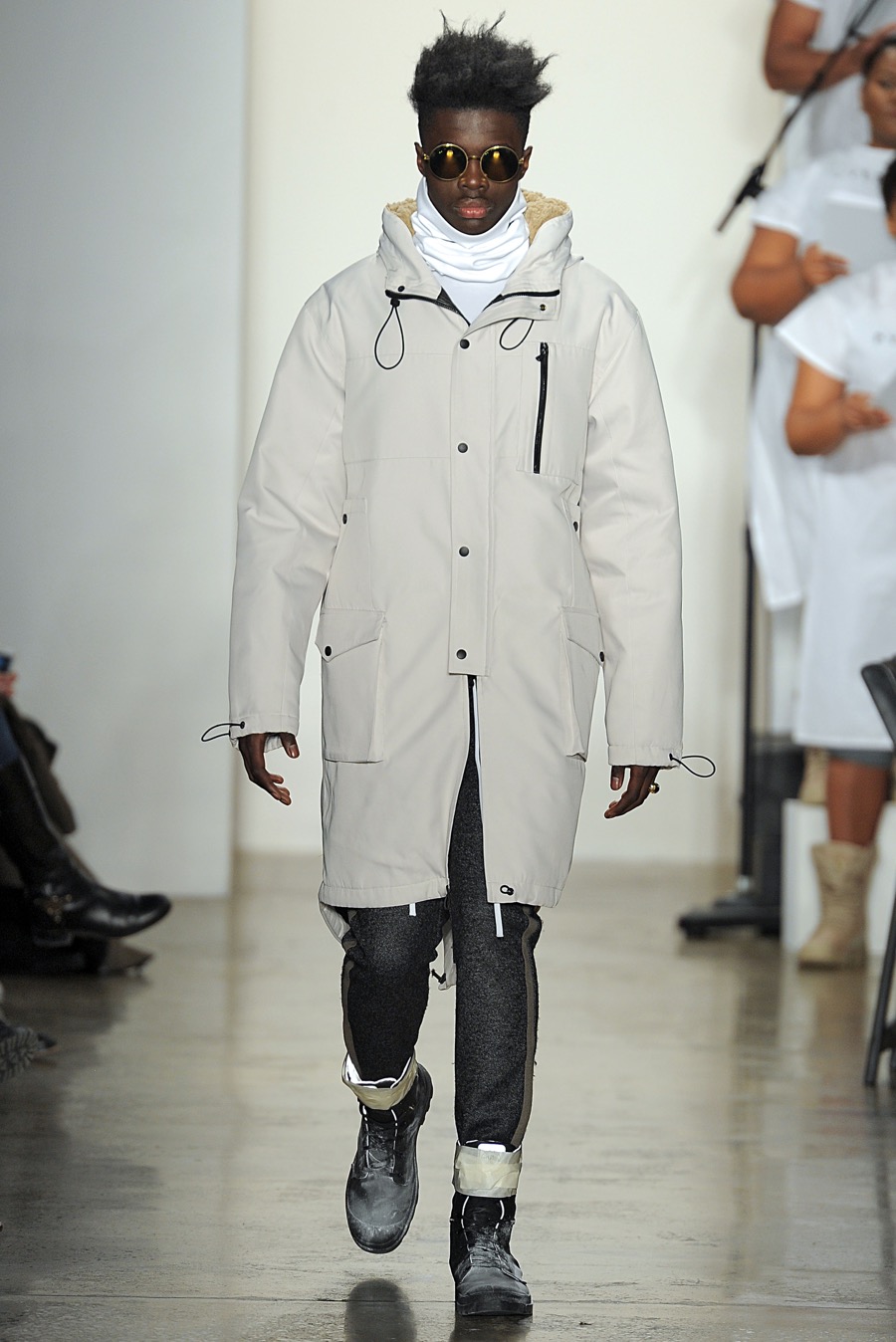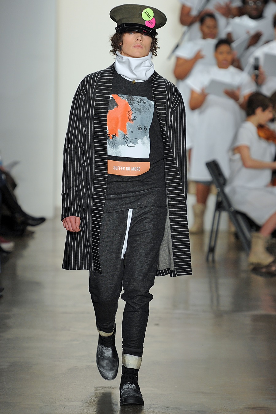 Pyer Moss designer Kerby Jean-Raymond turned his attention to mental depression as he created his fall-winter 2016 collection. Creating a range of tension, Jean-Raymond entitled his outing Double Bind, which is “a situation in which a person is confronted with two irreconcilable demands or a choice between two undesirable courses of action.” This idea manifested itself into a range of leisurewear that heavily revolves around relaxed separates.