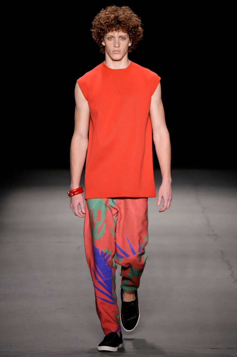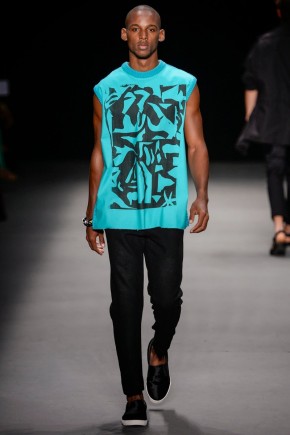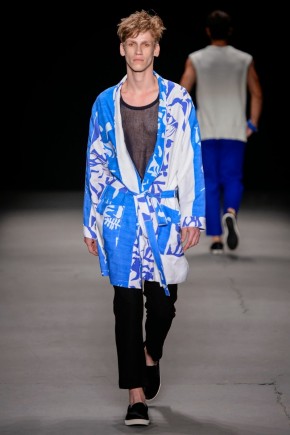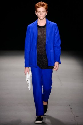 R.Groove Fall/Winter 2014–Brazilian label R.Groove creates their own version of a casual wardrobe for fall/winter 2014 with a fusion of Matisse modern art references and the laid-back lifestyle of the surfer. R.Groove designer Rique Gonçalves embraces a cool color palette with upbeat hues that include electric blue, turquoise and coral. Slouchy silhouettes are extended into a lineup of boxy sleeveless tops, robe-cut jackets, short-sleeve button-down and other essentials. Adding character with prints, artsy motifs are joined by elements perfect for the beach to round out a playfully young collection.