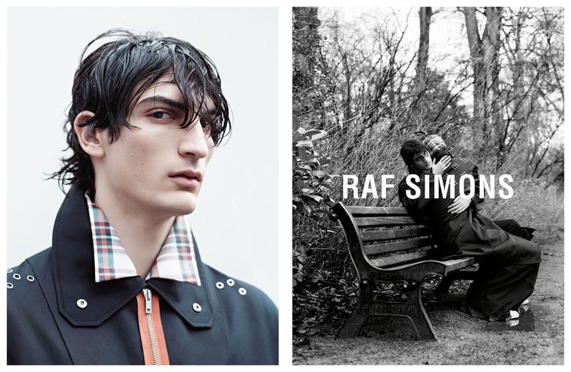 Continuing a longtime relationship with Raf Simons, photographer Willy Vanderperre and stylist Olivier Rizzo returned to shoot the designer’s spring-summer 2016 campaign. Model Luca Lemaire is in the forefront once more, posing with an anonymous figure. Captured in an embrace and in moments of intimacy, Luca models long coats and sleeveless sweaters from Simons’ youthful spring collection.