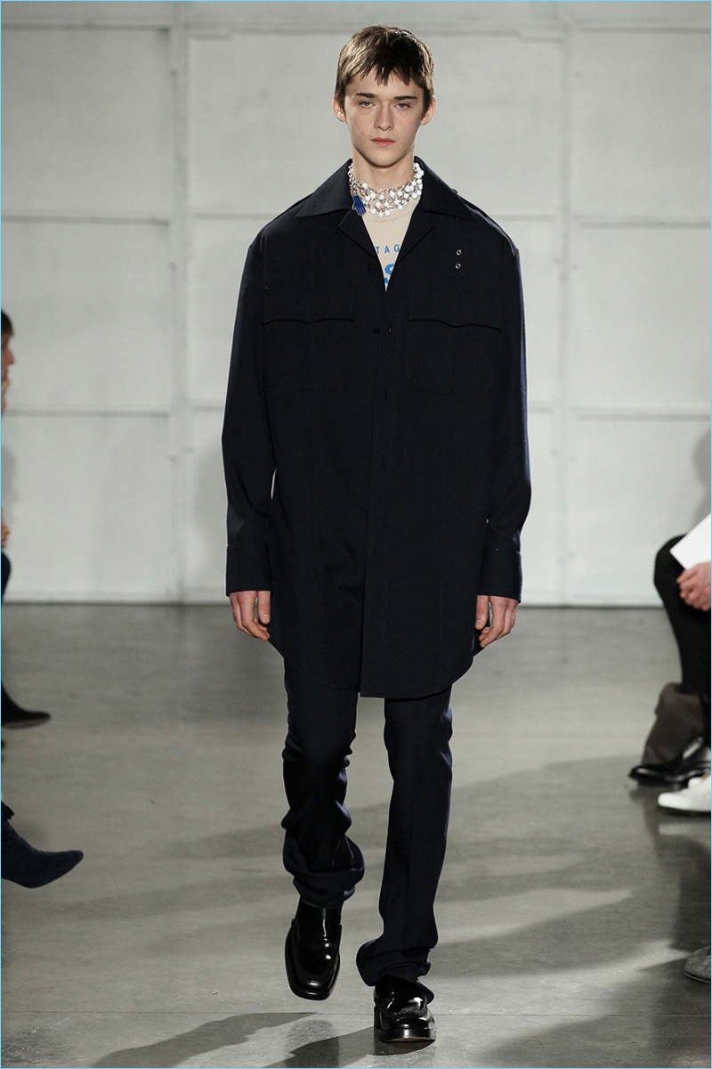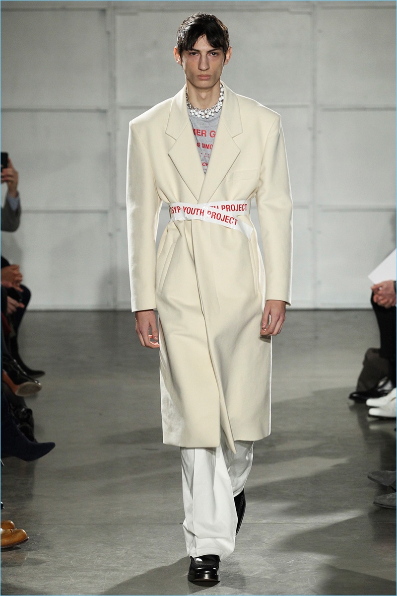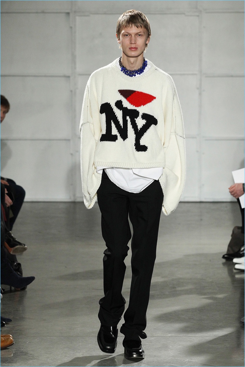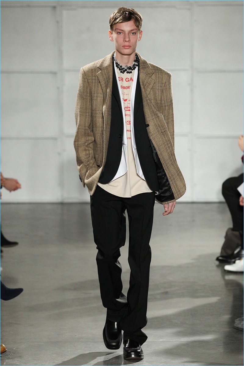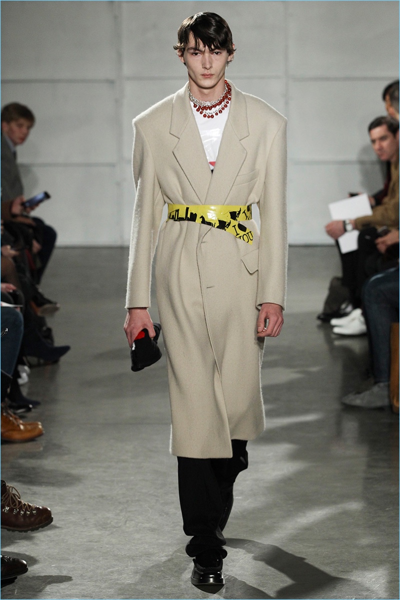 Coinciding with his new role as Calvin Klein creative director, Raf Simons joined the New York Fashion Week: Men’s lineup. Taking inspiration from the Big Apple for his fall-winter 2017 collection, Simons marries his affinity for a boyish spirit with the idea of tourists visiting New York. Bringing to mind images of New Yorkers in their best winter coats, the Belgian designer serves up an impressive range of oversized coats.
