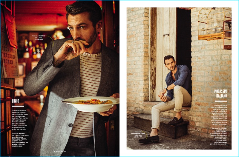 VIP Brasil lets São Paulo’s Jardim Di Napoli set the scene for its latest editorial. Almost seventy years old, the Italian cantina serves as the backdrop to photographer, Fred Othero’s October 2016 story. Here, Rafael Lazzini steals the spotlight, connecting with stylist, Ana Morbach.