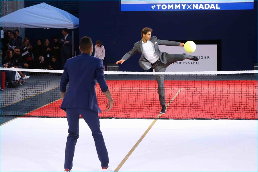Tommy Hilfiger and global brand ambassador Rafael Nadal touched down in Paris, France for a fun pop-up tennis tournament. Playing with an oversized tennis-football, Nadal faced off against Dutch footballer Gregory van der Wiel. Discussing the outing, Tommy Hilfiger shares, “Our partnership with Rafael brings one of the greatest athletes of this generation into our Tommy family.”