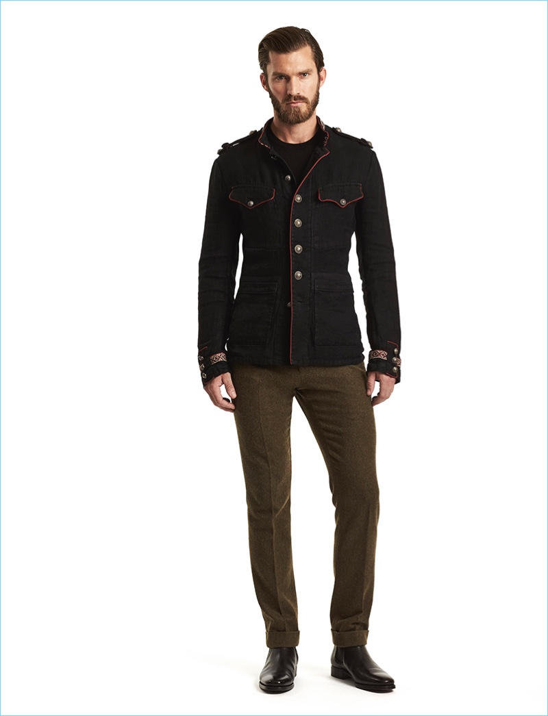Ralph Lauren Purple Label is back in the spotlight as the brand unveils its fall-winter 2017 men’s collection. Eclecticism takes root with a variety of signature styles explored. Here, a western aesthetic comes together with military inspirations and a love for the rugged outdoors. Juxtaposed with sharp tuxedos, Ralph Lauren delivers an endless lineup of covetable knit sweaters, refined joggers, double-breasted jackets, pleated trousers, and tailored coats.