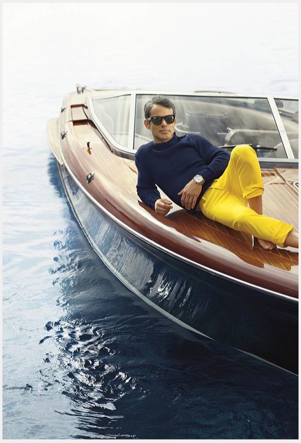 Ralph Lauren Purple Label Spring/Summer 2014 Campaign–Continuing his collaboration with Ralph Lauren, photographer Arnaldo Anaya-Lucca shoots this season’s campaign for the brand’s Purple Label. Ralph Lauren’s son and filmmaker, Andrew Lauren fronts the adevertisement. Representing the timeless elegance of his father’s label, Andrew is captured on a luxe getaway. Whether relaxing on the water in a smart pair of swim shorts and a classic black knit or suiting up in a gray tailored number, Andrew is the epitome of modern sophistication.