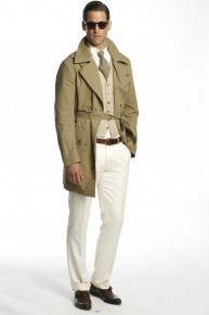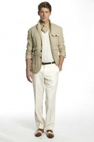American Refinement–Sharp lines, smart tailoring and essential sportswear come together for the spring/summer 2014 collection of Ralph Lauren Purple Label. Executing suiting with a classic mindset, pinstripes and the double-breasted blazer make a chic statement while a safari-inspired color palette dresses several of the collection’s more casual pieces. Pairing off-white trousers with a linen safari jacket or a buttery soft chocolate-brown leather jacket, Ralph Lauren exudes an easy luxury. Combined with a nautical motif taken to the next level in elegant black, outerwear with sculpted collars and fitted staples such as the turtleneck bring a sophisticated offering full circle.