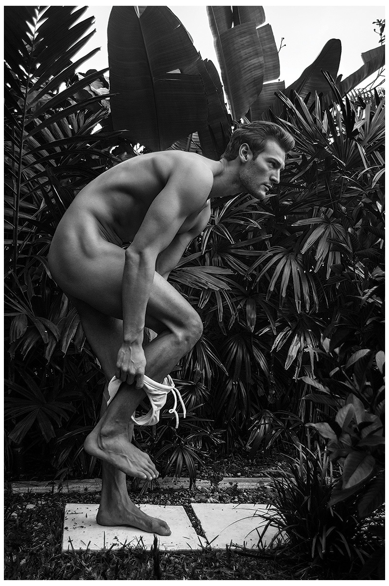 Ready for Summertime-Take a deep breath and try to accomplish your best yoga calm. Imagine it’s the summer and peaceful. Enter Soul Artist Management model Dan Murphy with a new photo series by photographer Scott Teitler. Posing for black & white imagery, Dan cozies up to the camera, beach ready in a white swimsuit for a stunning finish.