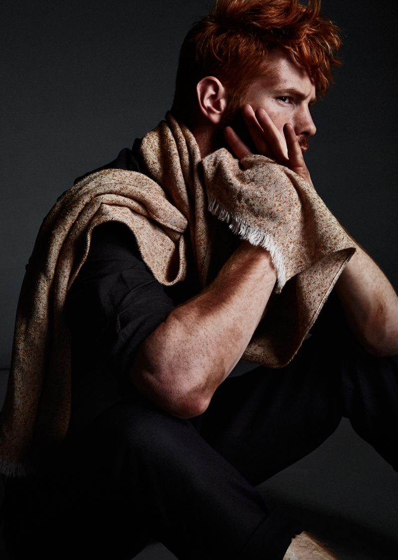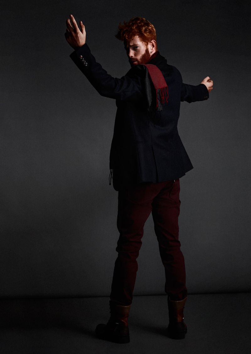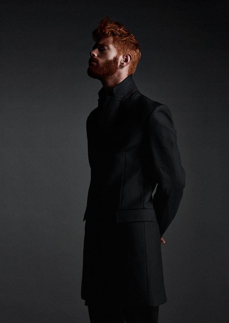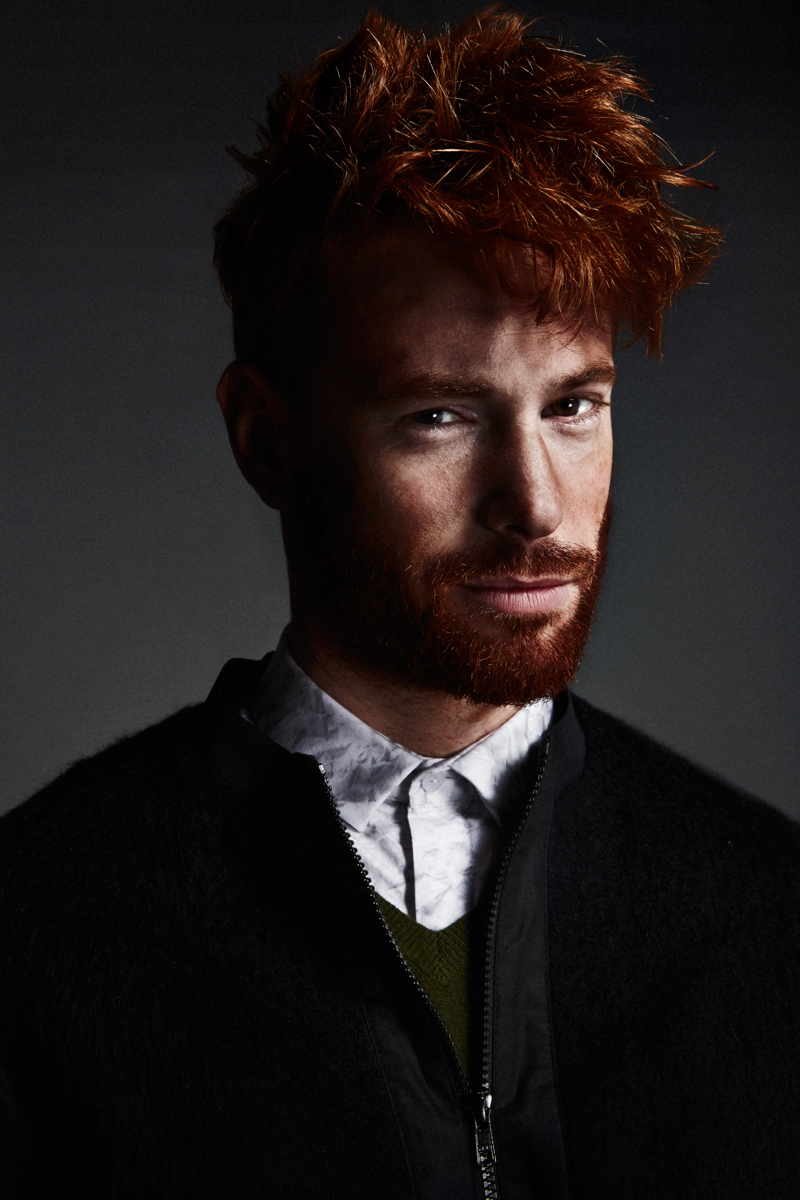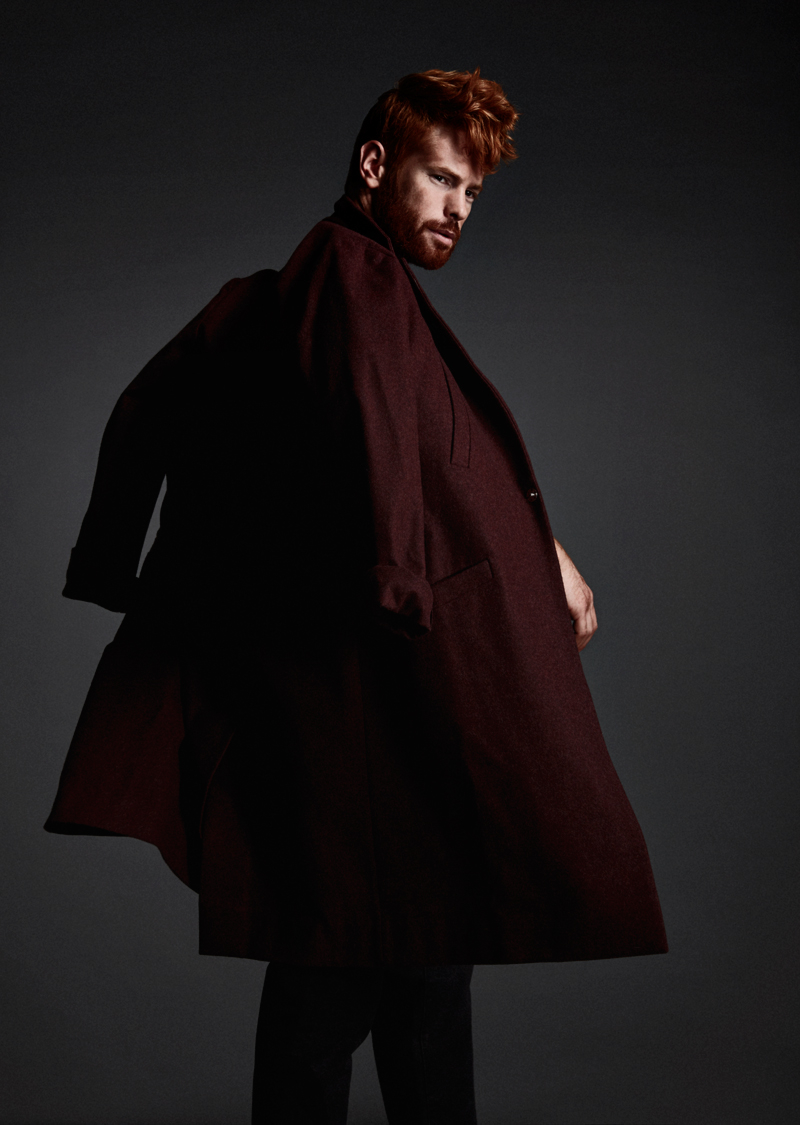 Out in the Dark–Redhead models seem to be having all the fun these days. Hot on the heels of Thomas Knights’ redhead exhibition, Ferry Menly magazine features the redhead for its latest issue. Photographed by Martijn Senders with styling by Juan Velazquez Caceres, model Harm V. is the man of the hour as he poses for striking images featuring fall coats and accessories. / Grooming by Clayton Leslie.