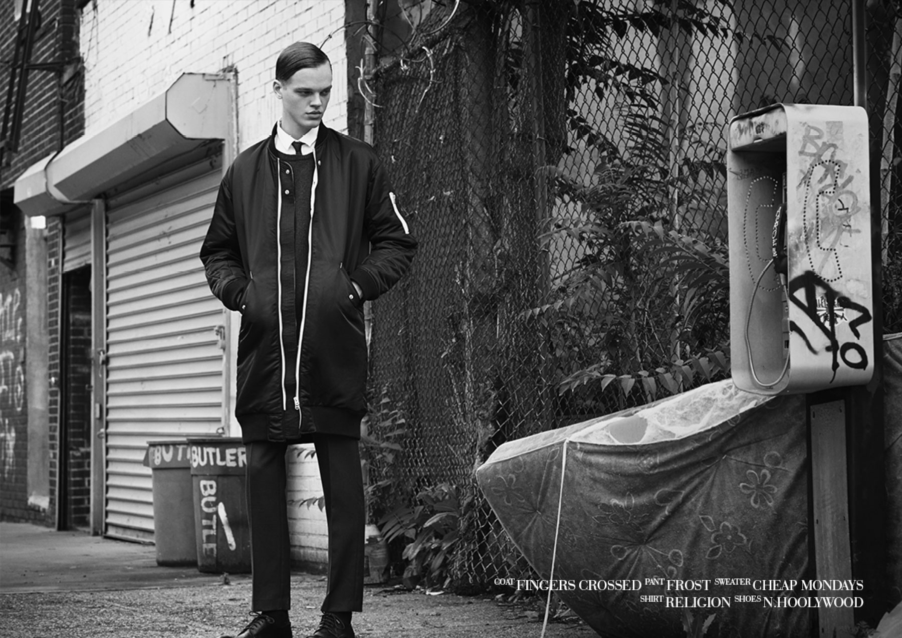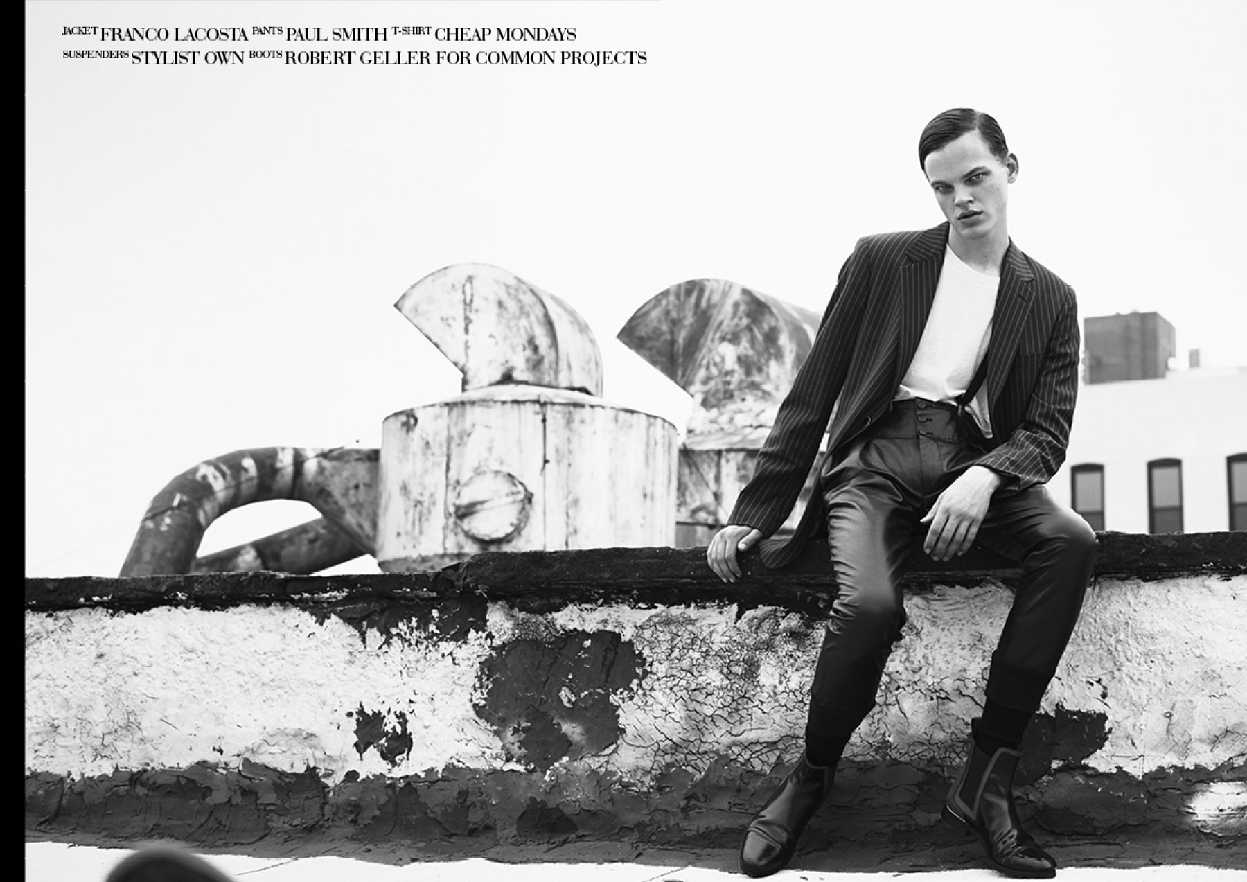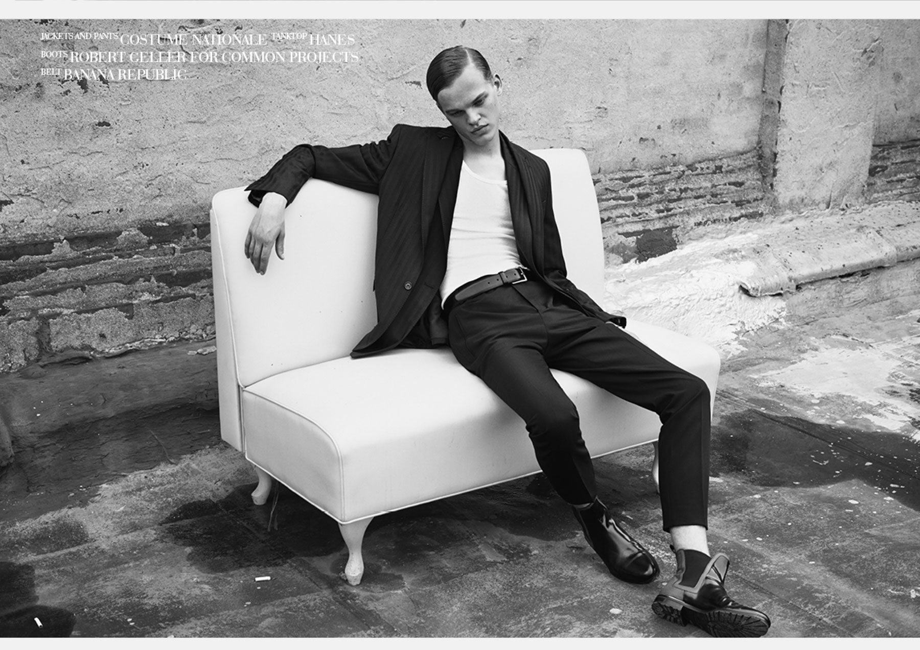 New Perspective-Dressed in garments from prestigious labels such as Viktor & Rolf and Jil Sander, model Reid Rohling (Fusion) graces the pages of RedMilk magazine, appearing before the lens of photographer Craig Salmon. For the story, stylist Annett Monheim assembles a wardrobe focused on the pureness of lines, alternated by structured and almost sculpted shapes with a vintage vibe, revisited in a current way. Pinstriped numbers, leather jackets, ribbed sweaters and slim coats alternate in the story, creating a new definition of contemporary menswear. / Grooming by Katsumi Matsuo.