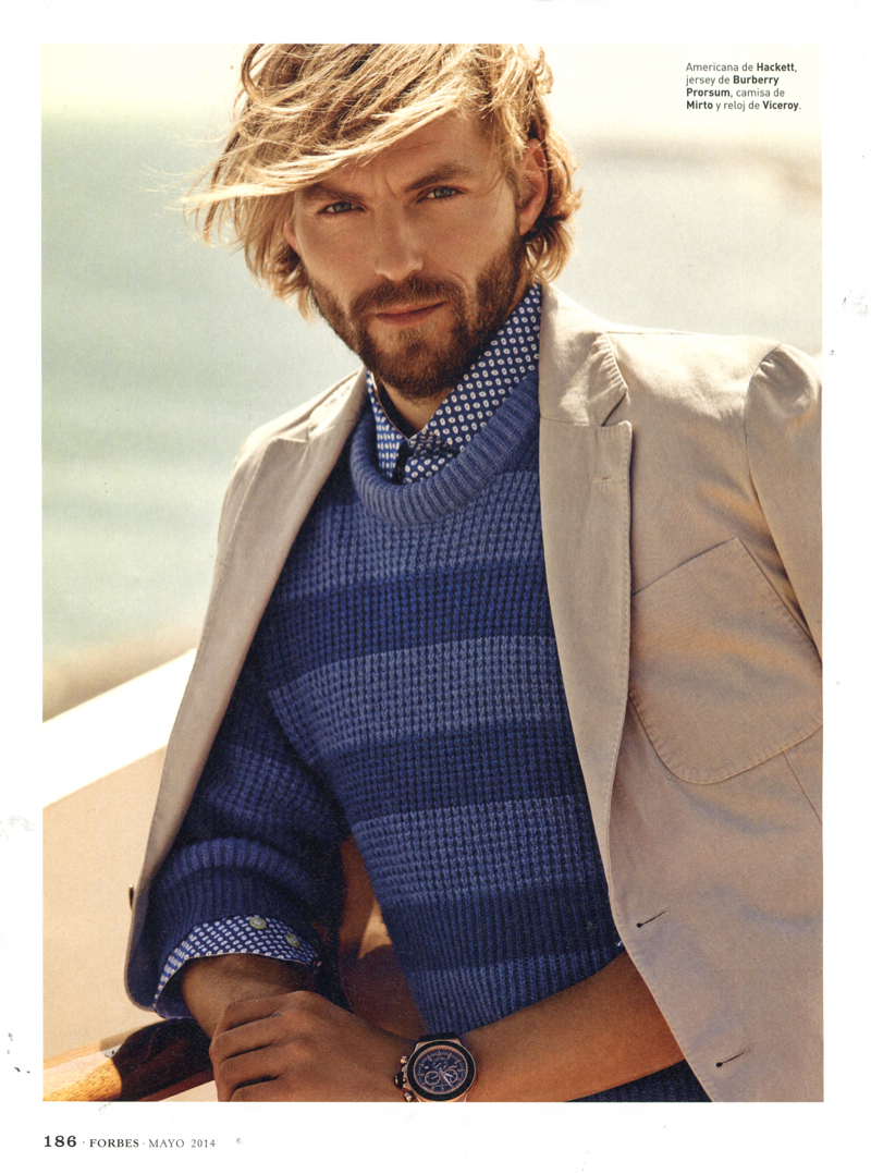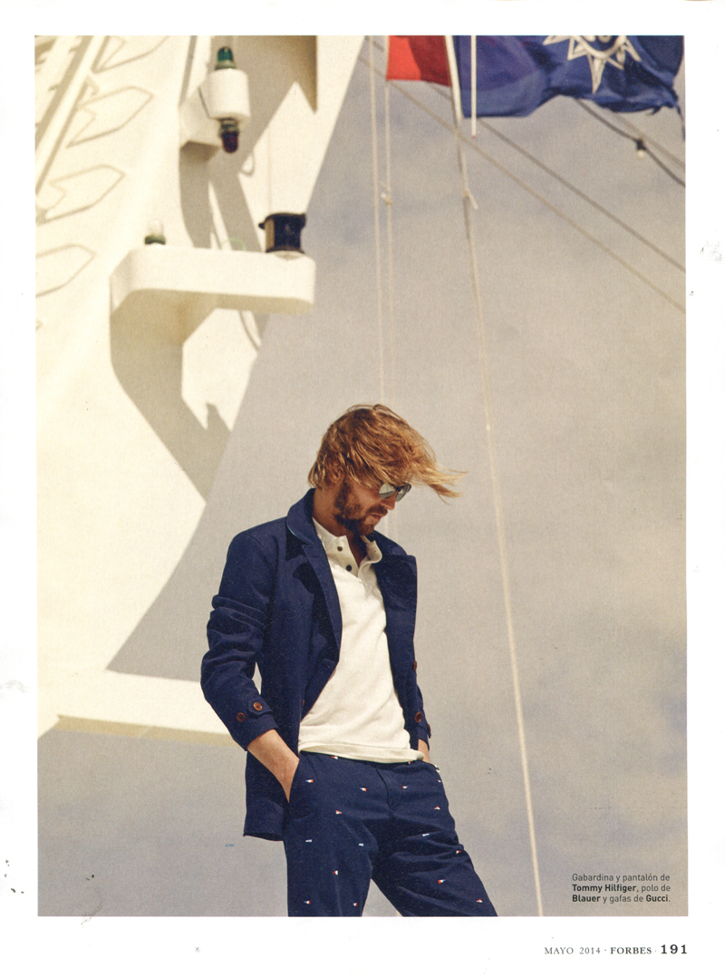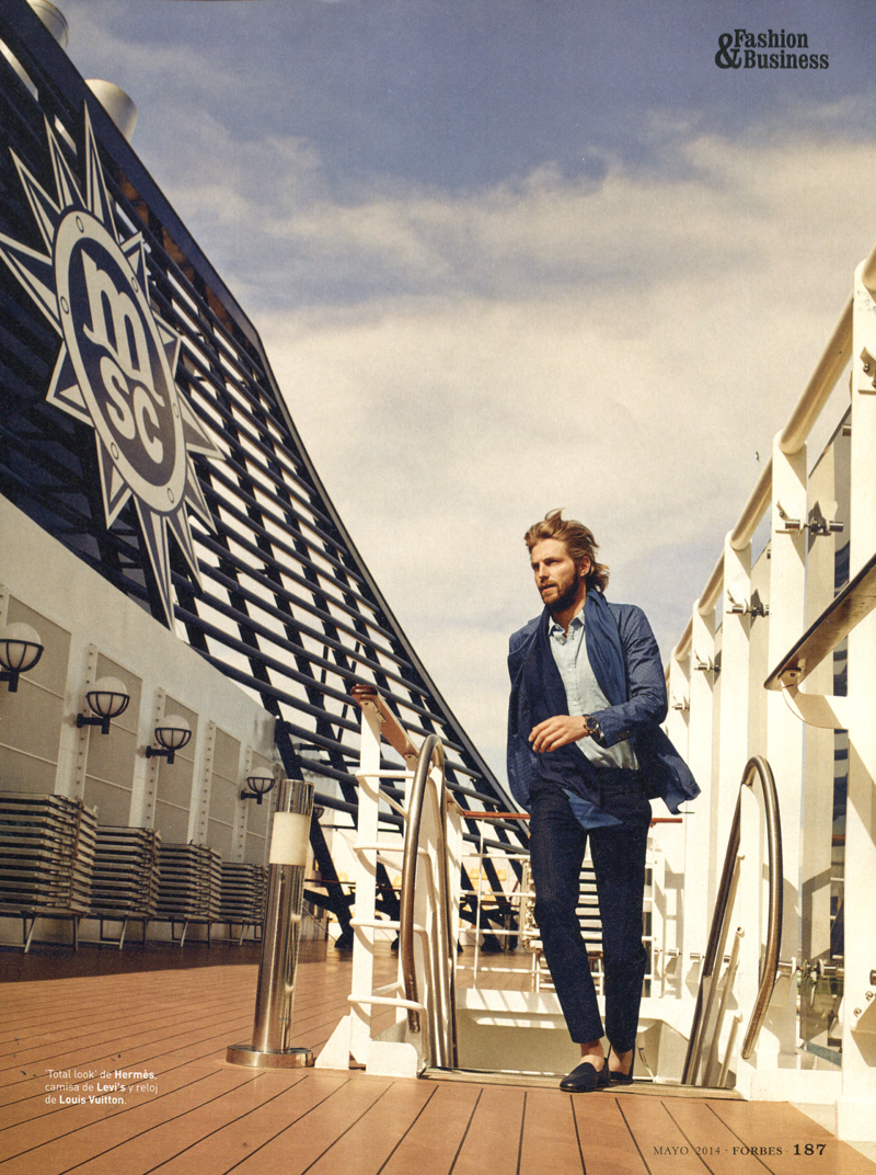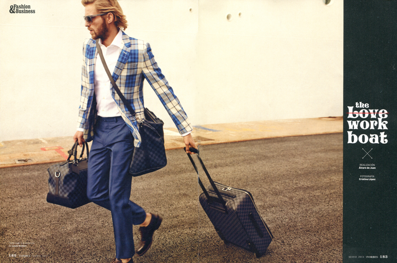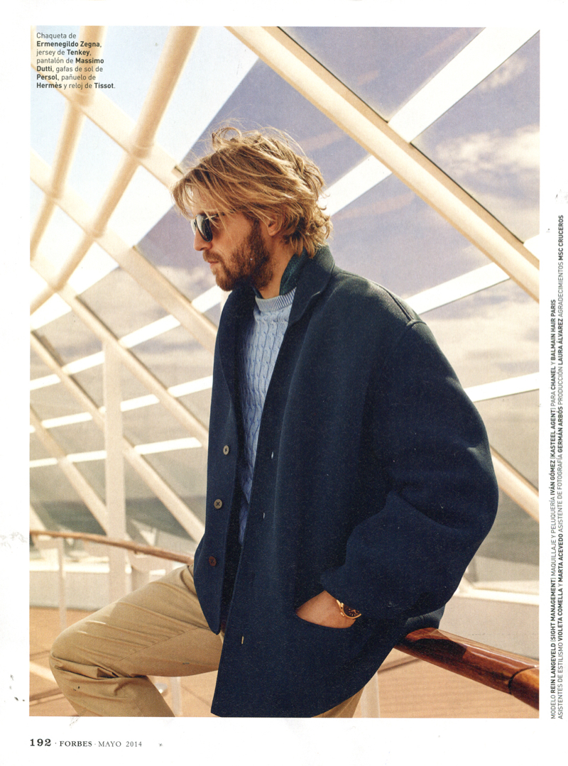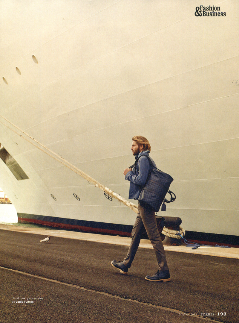 The Love Work Boat–Photographed by Cristina Lçopez, Sight Management model Rein Langeveld snags a luxe editorial for this month’s edition of Forbes Spain. Alvaro de Juan styles the spread, creating a timeless spring wardrobe for the man of style. Heading out to sea with a Louis Vuitton carryall in toll, Rein is pictured in garments from brands that include Massimo Dutti and Ermenegildo Zegna.