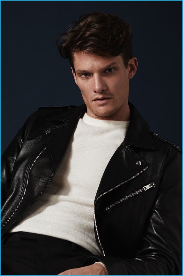 Reiss presents a sleek selection of options with its fall-winter 2016 premium collection. Danny Beauchamp reunites with the fashion brand in choice styles from the range. The English model embraces a formal edge in skinny-fit suiting. Danny completes his formal ensembles with Reiss’ refined shirting and accessories. The collection also includes casual staples such as a tab collar leather jacket and cashmere sweater.