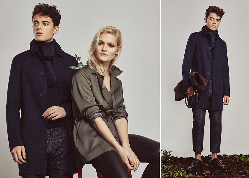 Reiss’ mainline continues a tailored penchant for the season. Model George Elliott is a chic vision, wearing standouts for the season. From the belted safari jacket and leather moto jacket to sharp tailored suiting, George’s wardrobe simply inspires. Adding a rich splash of color to cool season greys, Reiss makes a case for burgundy.