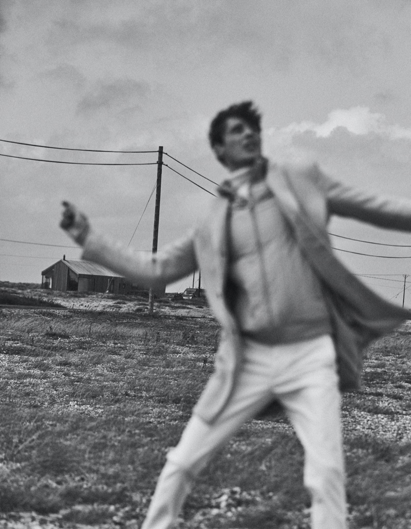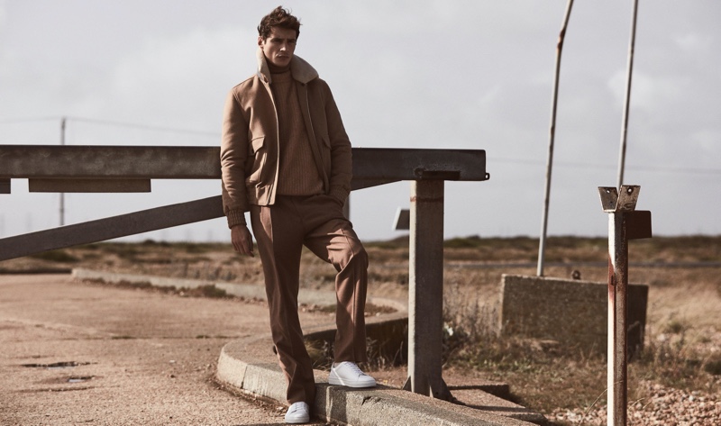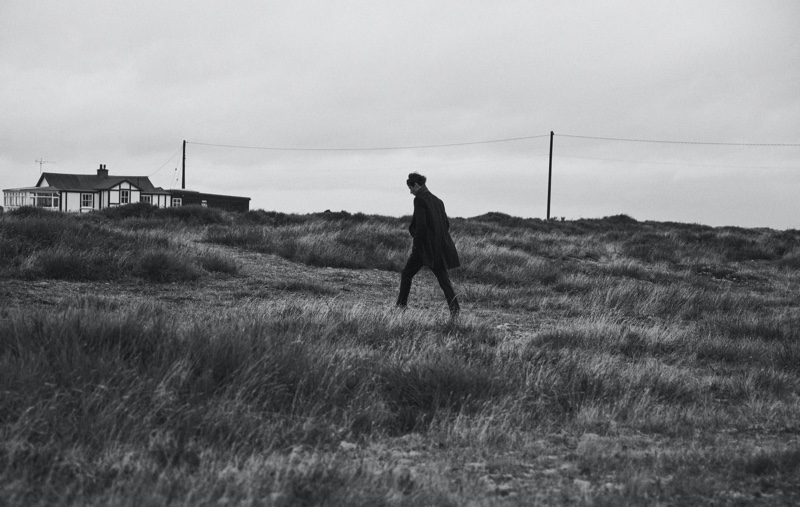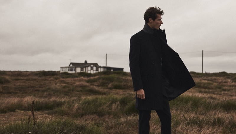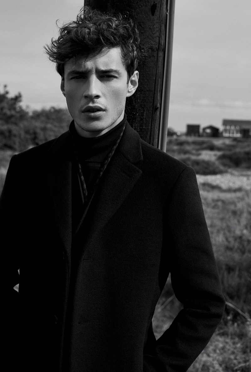 The face of Reiss’ fall-winter 2019 campaign, model Adrien Sahores reunites with the brand for a striking editorial. The top model takes to Dungeness, Kent to don a sleek lineup of coats and jackets. Country chic meets city slicker