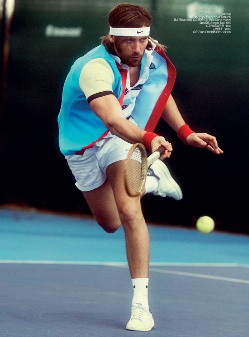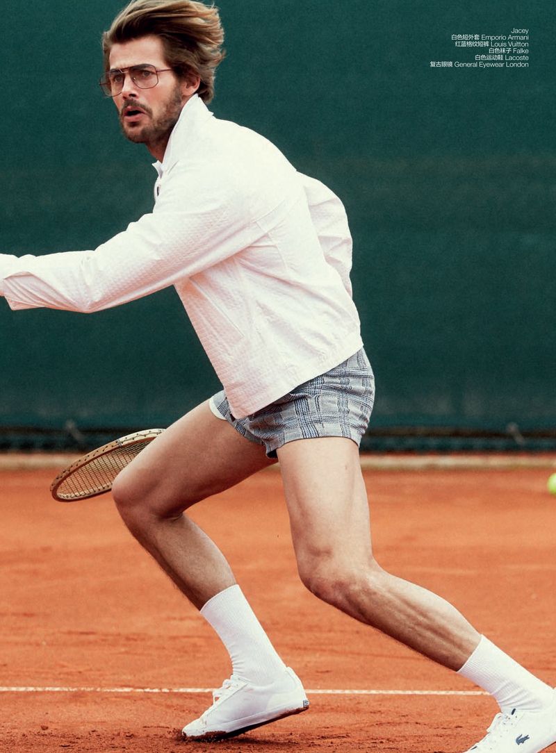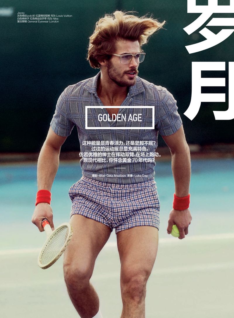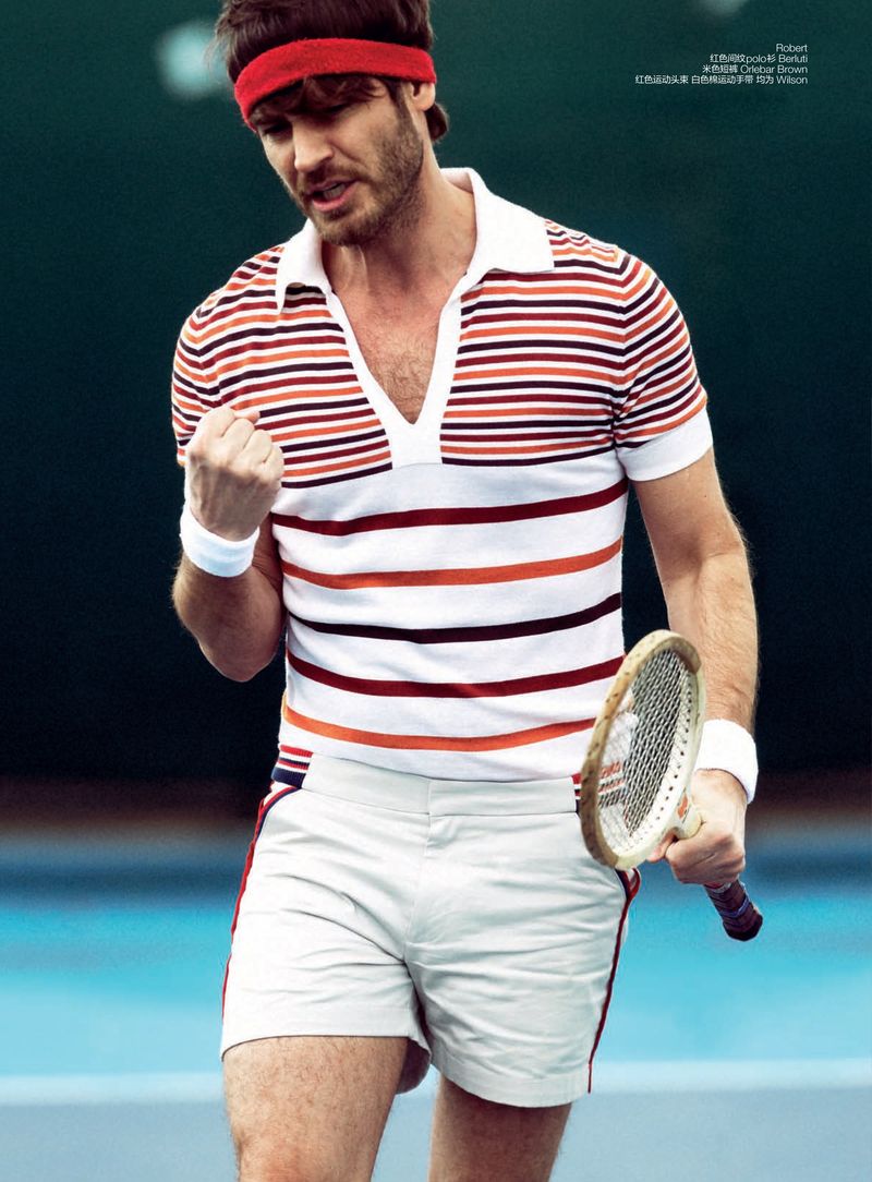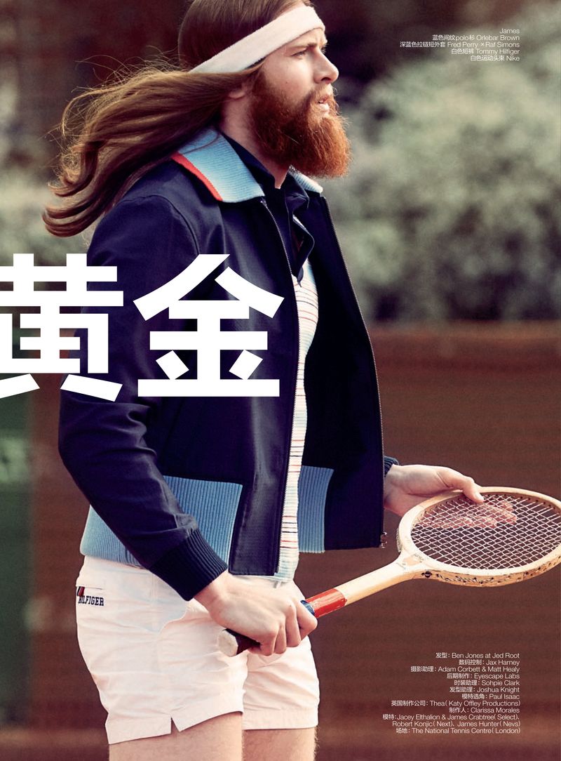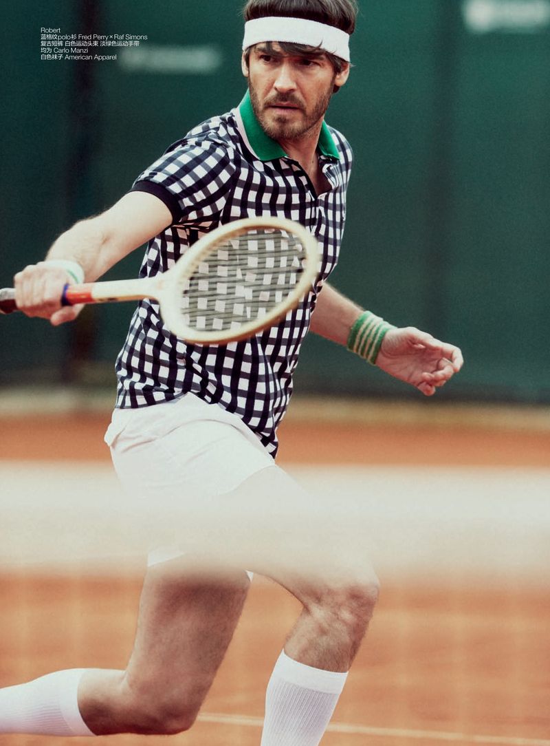 Golden Age–Models Jacey Elthalion, James Crabtree, Robert Konjic and James Hunter come together for a stellar story in the spring/summer 2014 edition of GQ Style China. Taking to the court for active photos by Blair Getz Mezibov, the boys are styled by Luke Day as they get into the retro spirit with a tennis-inspired wardrobe. Giving it their all, the models channel their best athlete as they model styles from Tommy Hilfiger, Fred Perry and other brands. L’Officiel Hommes Germany also recently featured a great tennis-inspired story. So, when are you hitting the court?