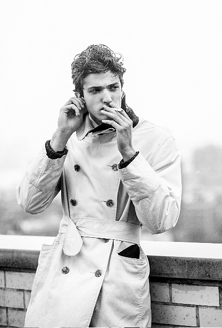 A Rainy Afternoon–Photographer Ricardo Nelson spends a rainy afternoon in Manhattan lensing newcomer Eric Shostak. Opting for refined black & white pictures, Nelson provides charming portraits of Red’s new face, shooting Eric in a quiet atmosphere on the roof of a building. Sporting a timeless trench coat, Eric is a vision of classic elegance, which is pretty rare to find in a 17-year-old guy.