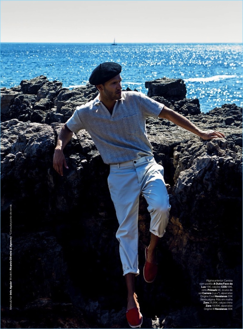 Photographer Gonçalo Claro takes us to the beach for a new editorial. Claro collaborates with stylist Joyce Doret for the May 2017 issue of Men’s Health Portugal. Tackling the persona of a painter, model Ricardo Oliveira dons a beret as he embodies a summer day at the beach. The Portuguese model sports romantic styles from an array of fashion brands, which includes COS and Zara.