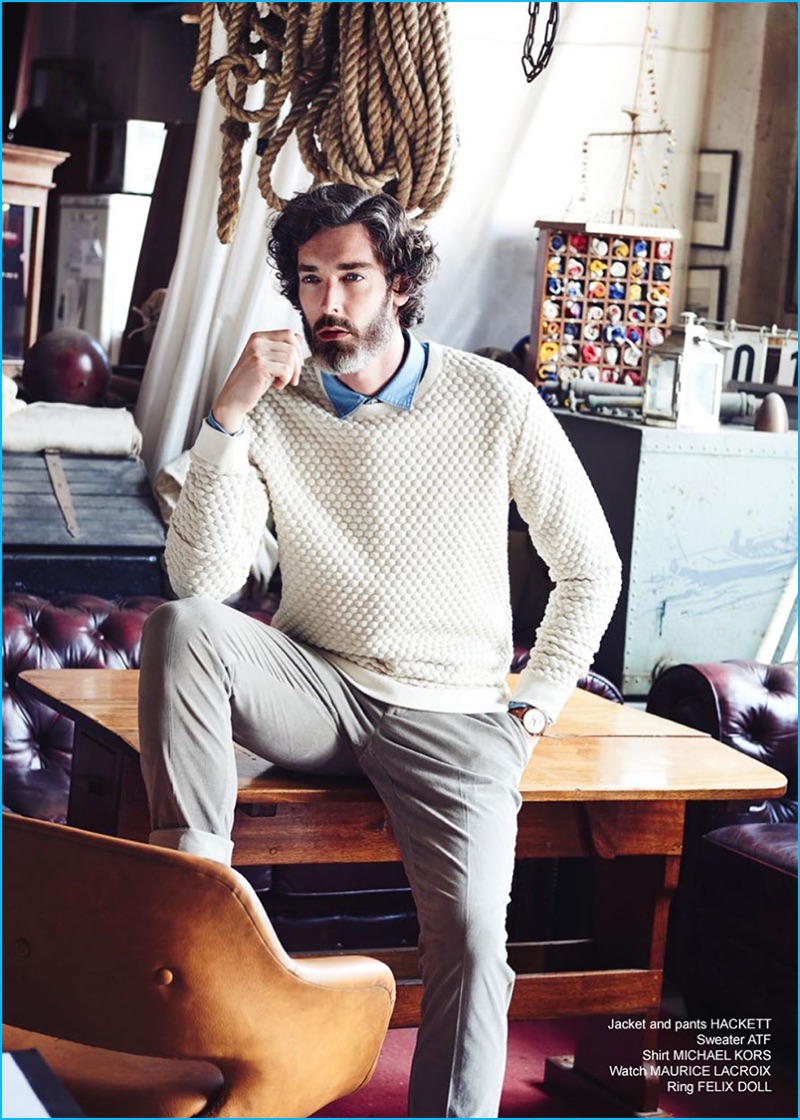 Lui Italia connects with model Richard Biedul for its November 2016 issue. The English model graces the cover in a dapper coat and trendy jumpsuit from Chafor. Richard takes on an interest in boats for the dashing story. Connecting with stylist Stephan Kallaus, Richard models fall fashions from a host of designer labels. Appearing before the lens of photographer Ava Pivot, Richard impresses in modern suits, sharp coats, covetable sweaters, and more.