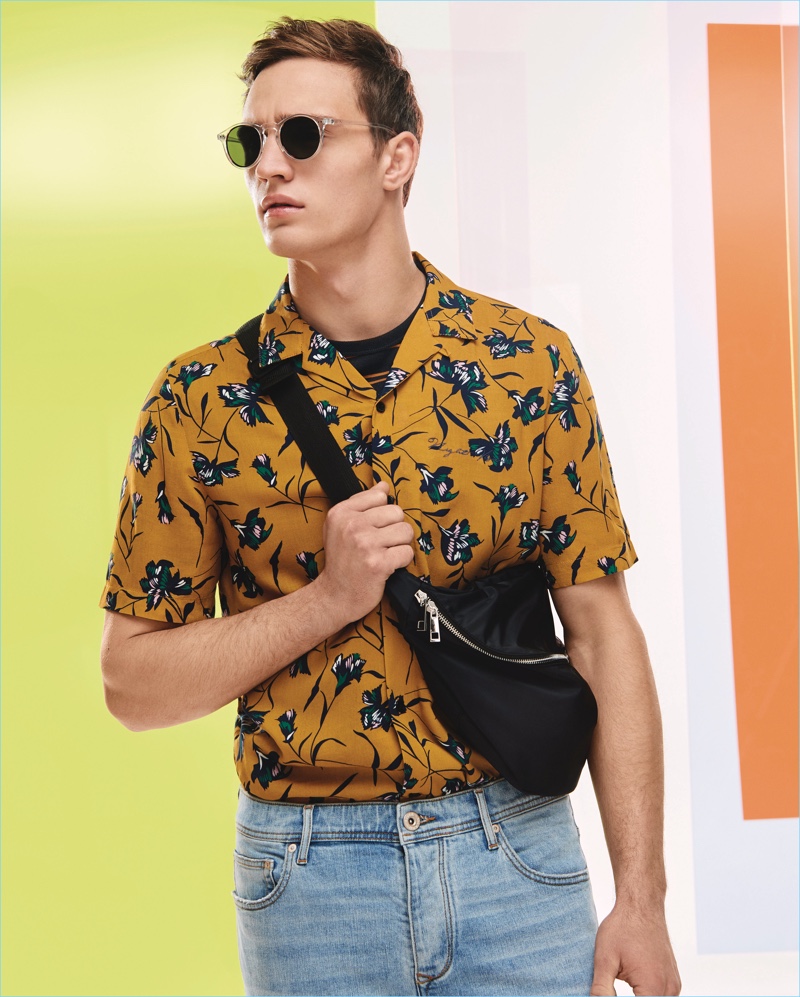 River Island goes tropical for its high summer collection. The brand juxtaposes its penchant for “high street luxury” with a resort feel for the season. Floral prints come together with premium heritage fabrics for an on-trend outing. Model Julian Schneyder reunites with River Island to showcases its latest looks. Starring in a colorful lookbook, Julian displays the various assets of the label’s stylish man.