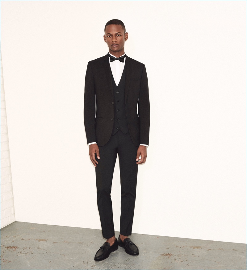 River Island embraces a formal attitude as the brand releases its latest tailoring. The British brand sets us up for various occasions that range from prom to work events and weddings. Smart separates, sharp suits, and versatile companion pieces come together for the season. Models Joel Meacock and Lucas Cristino star in River Island’s lookbook. Dressed to impress, the models wear the brand’s sartorial best. The lineup includes Prince of Wales skinny-fit suits, elegant tuxedos, pastel colored suiting, and more.